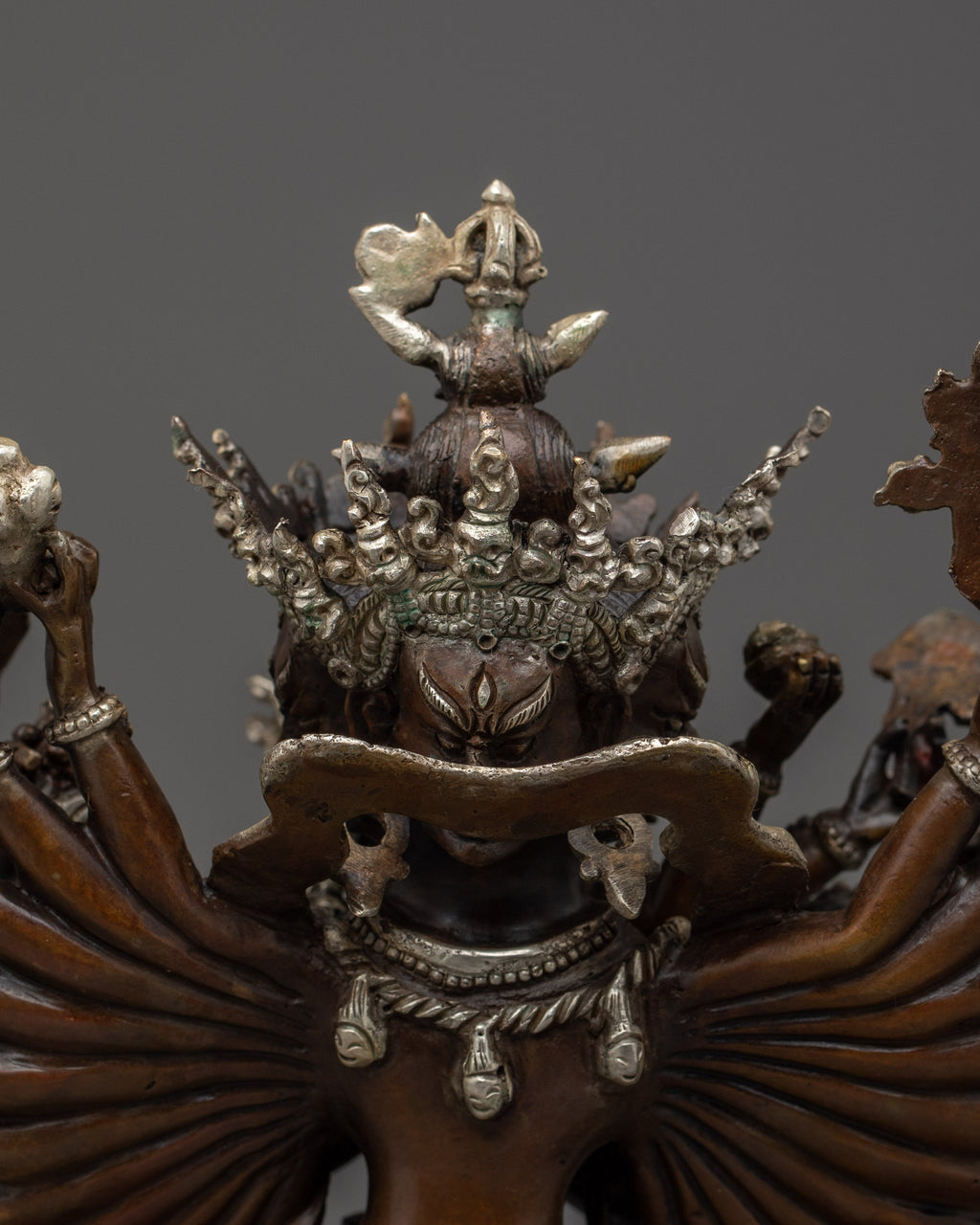 Handmade Silver-plated Kalachakra statue in oxidized copper | Buddhist Deity for Tantric Ritual