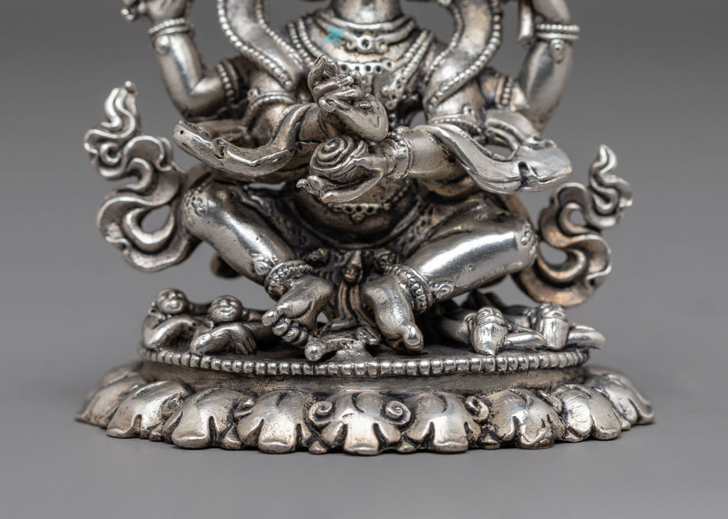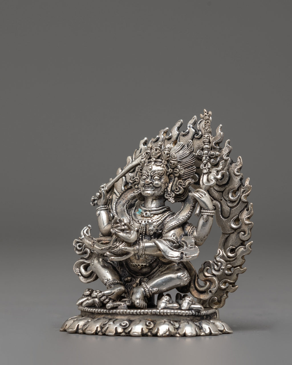 Silver Plated Mahakala Statue | Tibetan Wrathful God Figurine