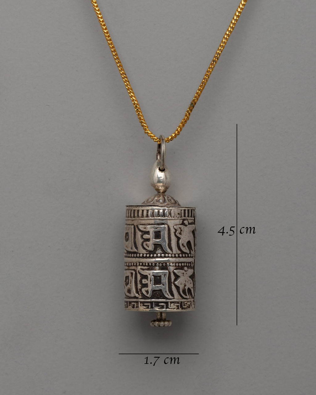 The Sterling Silver Prayer Wheel Locket is a magnificent blend of art and spirituality. This locket is made of 92.5% pure silver, inspired by ancient Tibetan prayer wheels. It's more than just a pendant; it's a spiritual tool that holds sacred mantras and helps you with daily awareness and meditation.