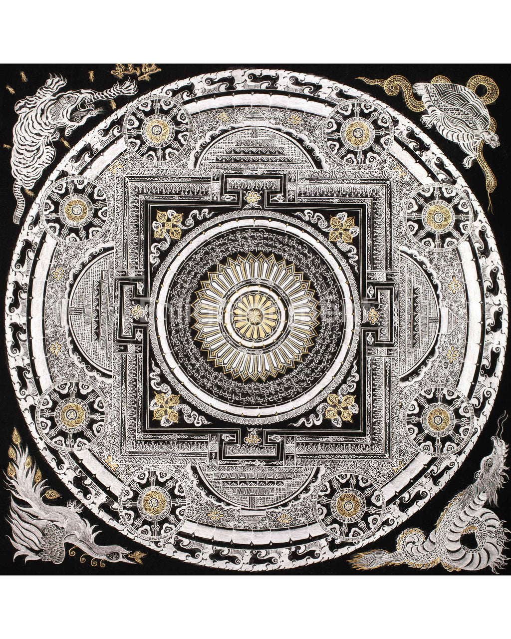 Transform Your Sacred Space with a Silver with Gold Mantra Mandala | Tibetan Art for Protection and Meditation