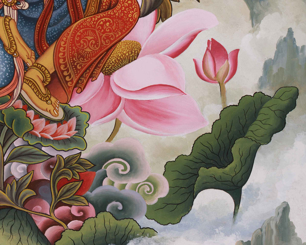 THIS THANGKA IS HAND-PAINTED IN THE TRADITIONAL STYLE BY A NEPALI ARTIST, AND THE QUALITY IS HIGH