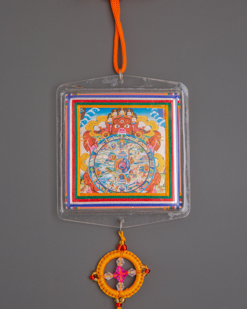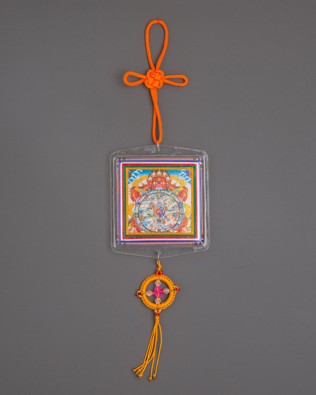 Sacred Buddhist Samsara Wheel Charm | Mahakala Protection Ornament