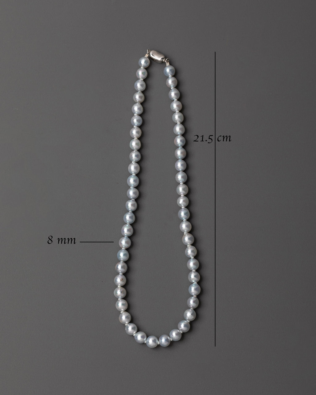 This Spiritual Buddhist Prayer Mala is made from precious Japanese Grey Pearls and serves as a valuable tool for meditation, prayer, and mindfulness. This mala is 21.5cm long, has 8mm polished beads, and weighs 0.040kg. It represents serenity, clarity, and dedication. Pearls are traditionally seen as symbols of knowledge and tranquility, giving harmony and balance to spiritual practices.
