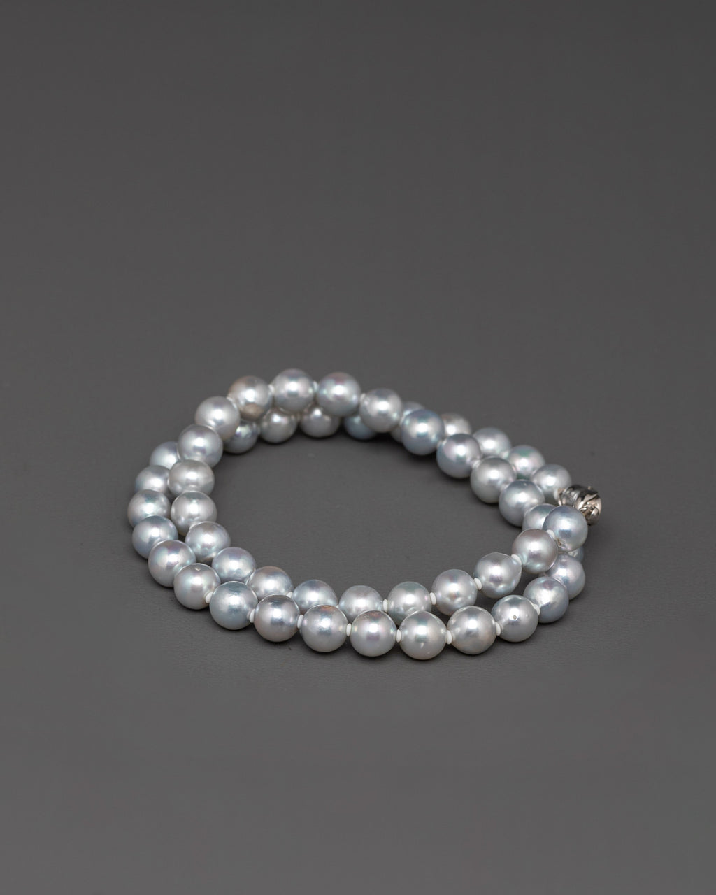 The Japanese Grey Pearl Mala features 108 beads, representing the sacred number used in Buddhist and Hindu faiths for mantra recitation and prayer. Each bead has a natural, relaxing shine that promotes focus and helps ground you during meditation. This spiritual mala also symbolizes purity, attention, and inner awakening.