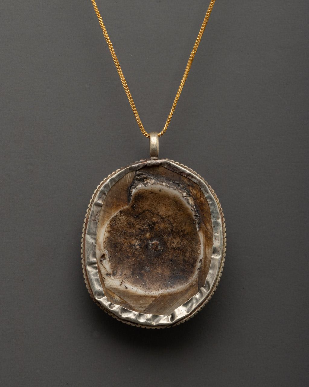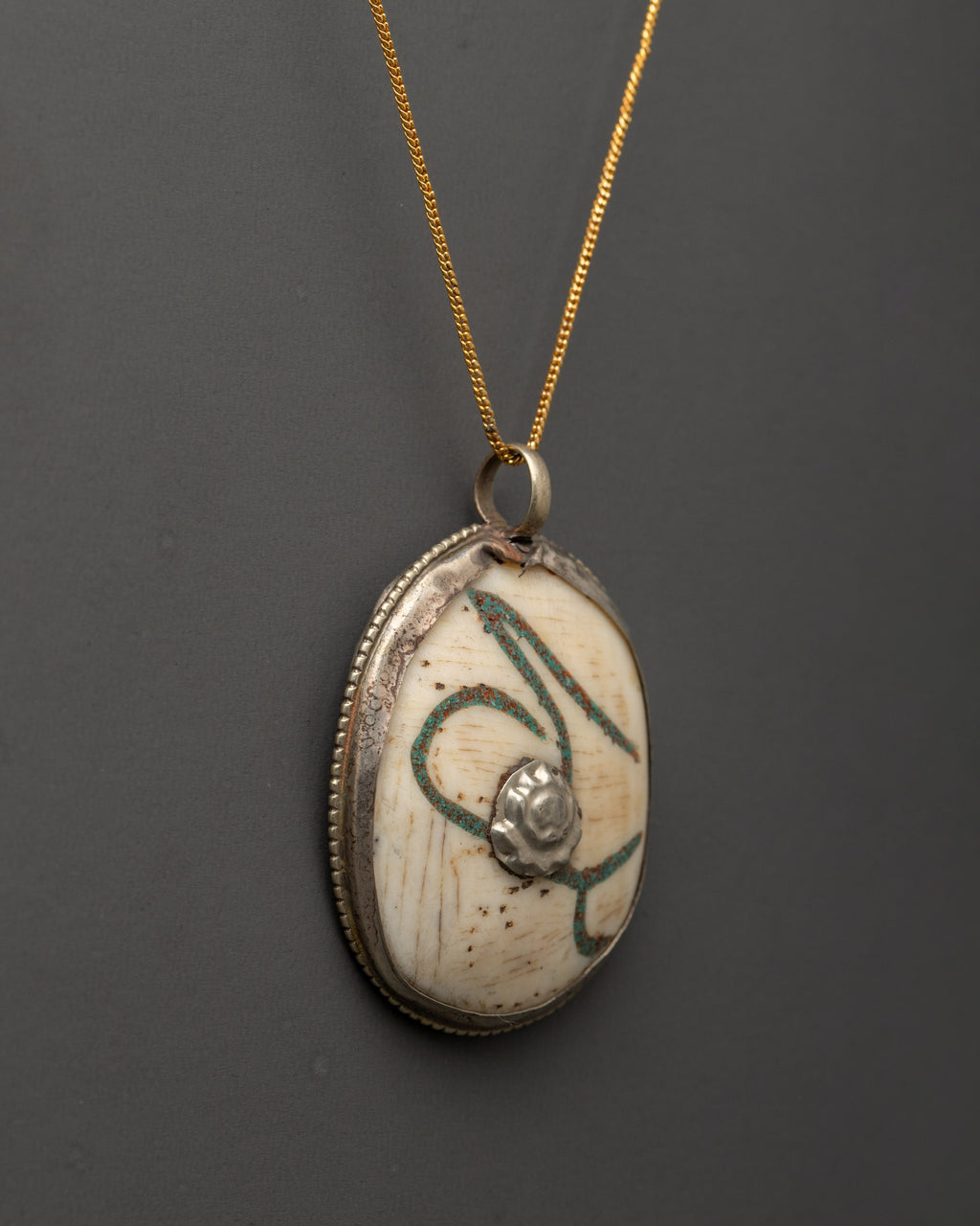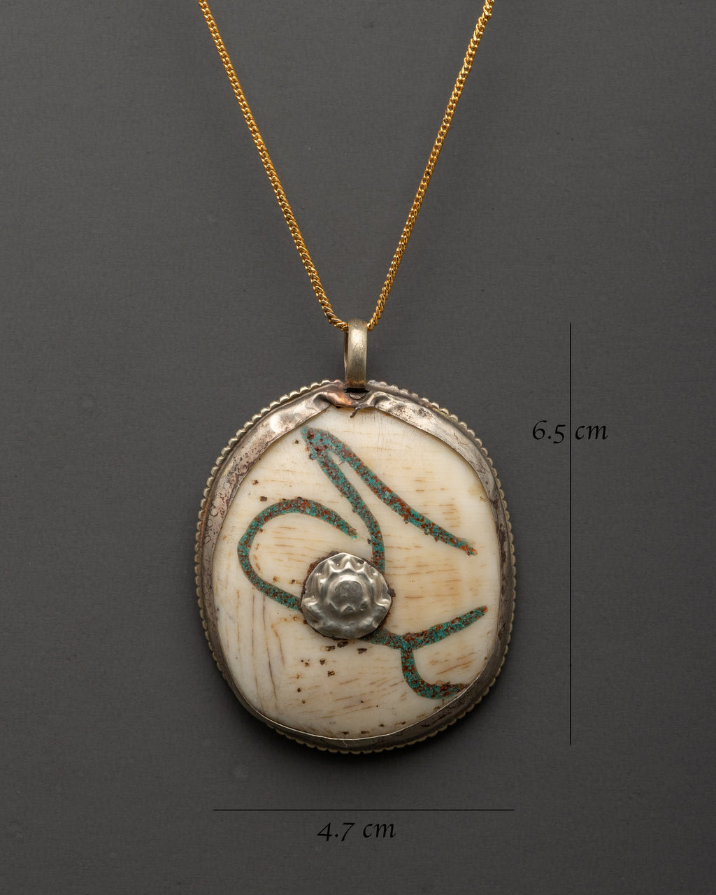 The silver-plated accents provide a touch of elegance, and the carefully positioned symbol in the middle, surrounded by the natural beauty of the conch, contributes to the locket's overall spiritual significance. This pendant can serve as a symbol of calm, purity, and spiritual enlightenment. This locket is a wearable connection to divine energy and spiritual equilibrium, making it ideal for personal use or as a meaningful present for a loved one.