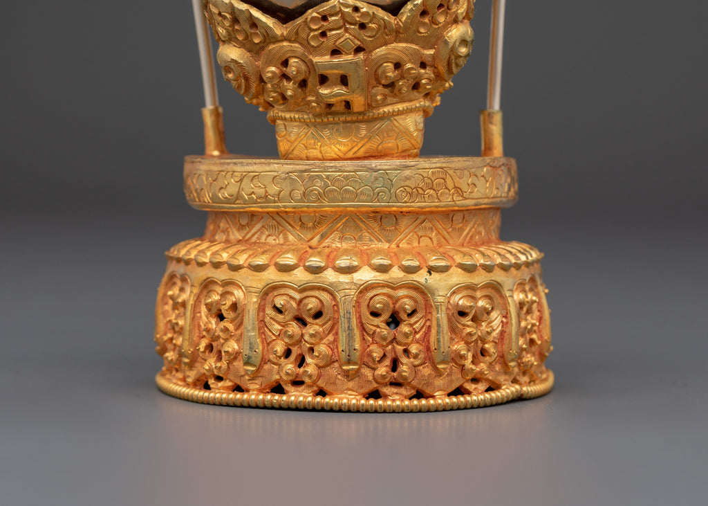 This handcrafted Kapala Skull Cup is a powerful spiritual artifact rooted in ancient Tibetan Buddhist rituals. Traditionally used in Tantric ceremonies, this sacred object symbolizes the transformation of ignorance into wisdom. With its intricate gold and silver-plated detailing over a solid copper base, this piece not only holds deep ritualistic value but also serves as a stunning centerpiece for any meditation space or shrine.