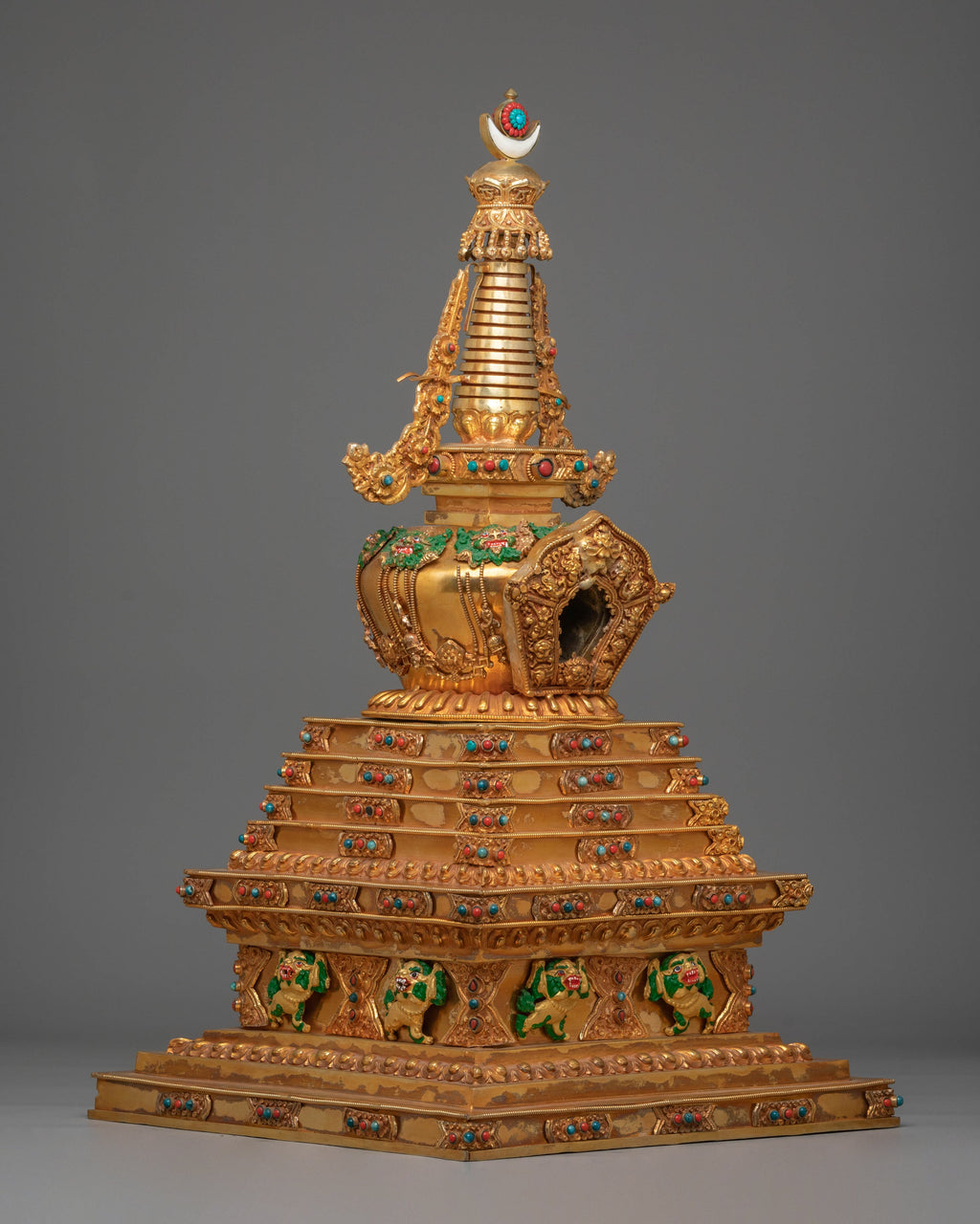 Spiritual Handcrafted Tibetan Stupa | Copper with Gold Plating