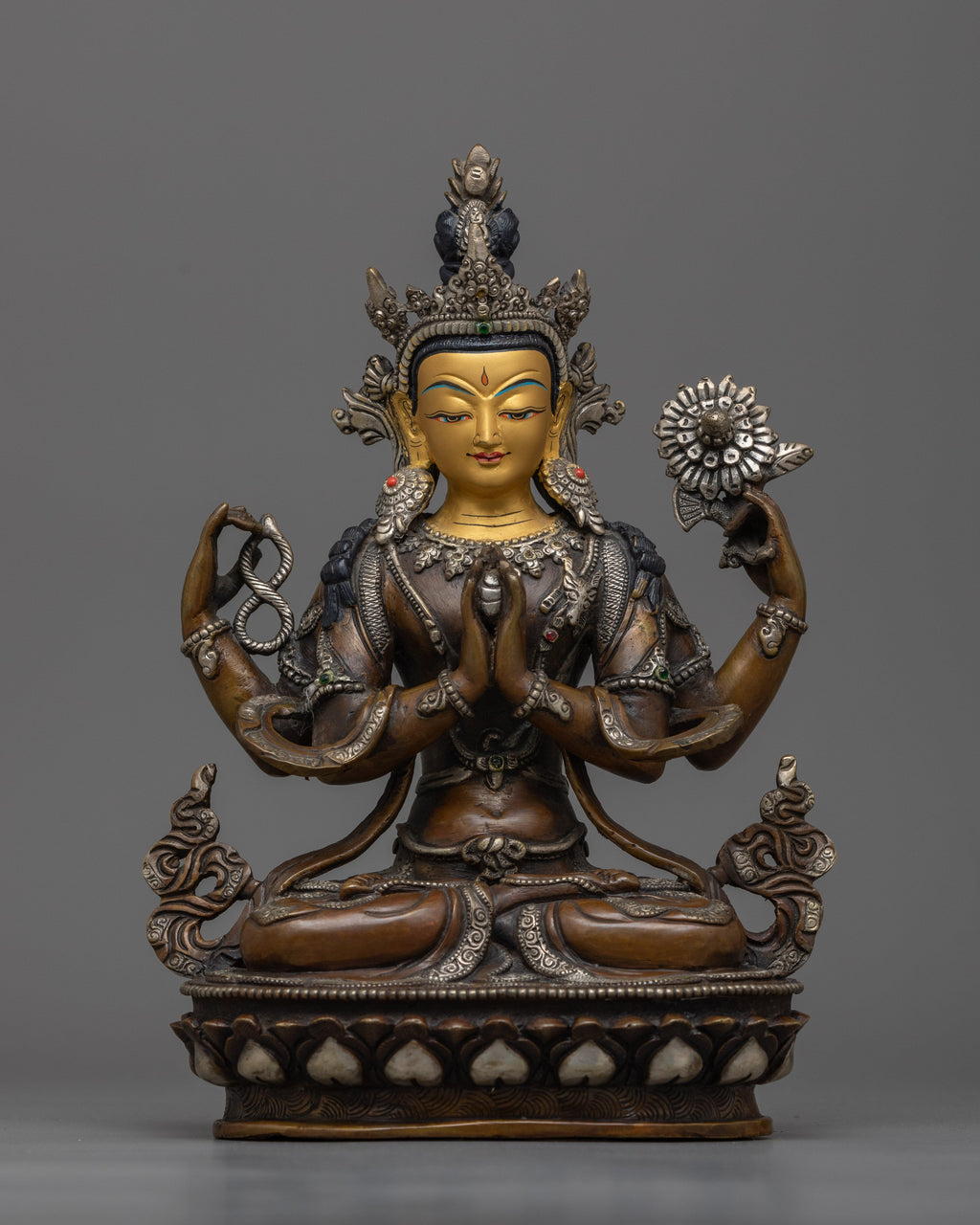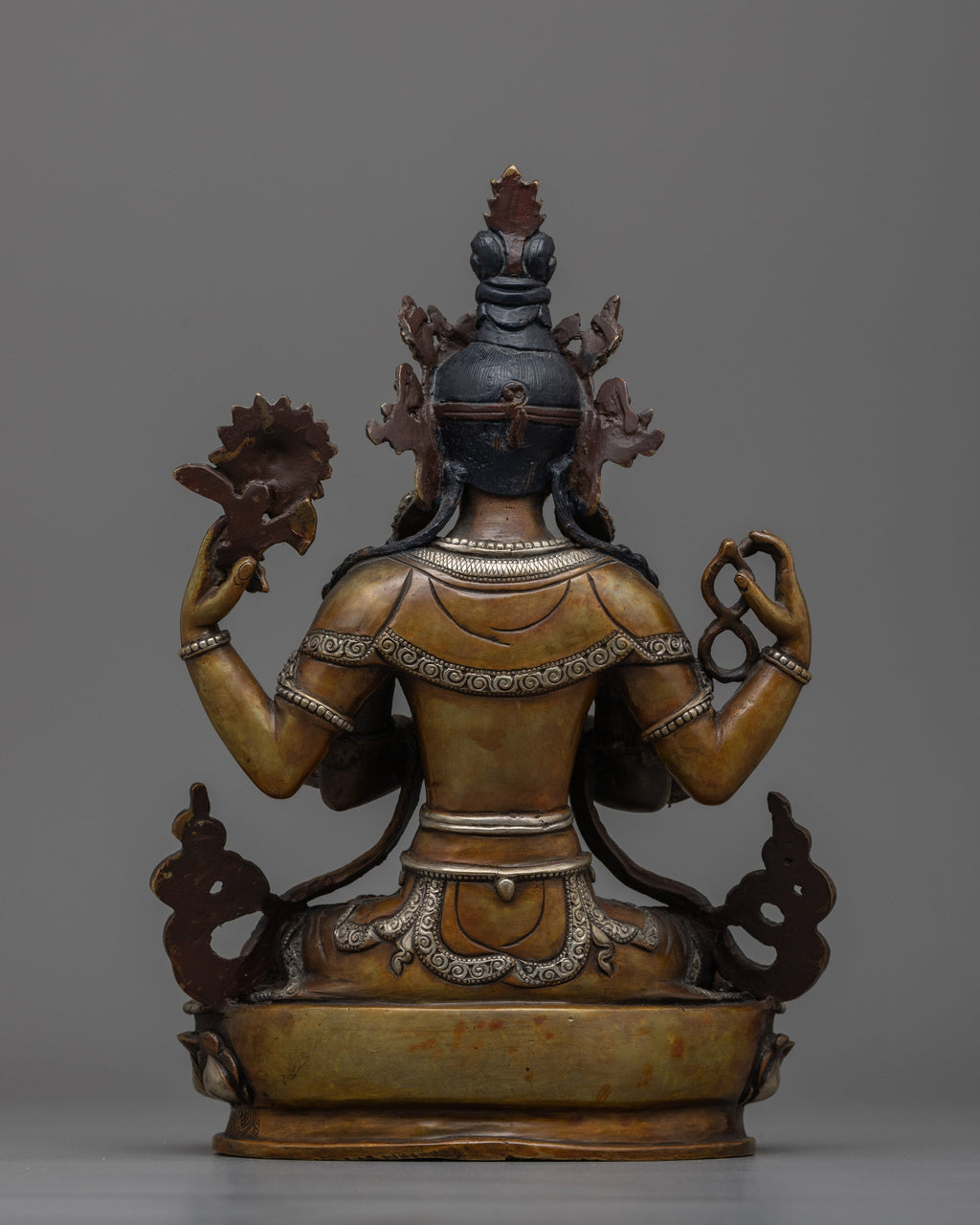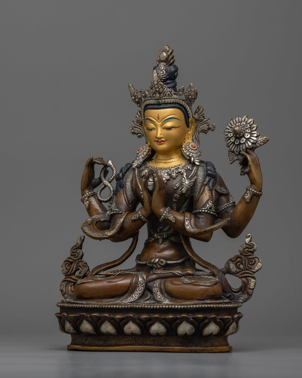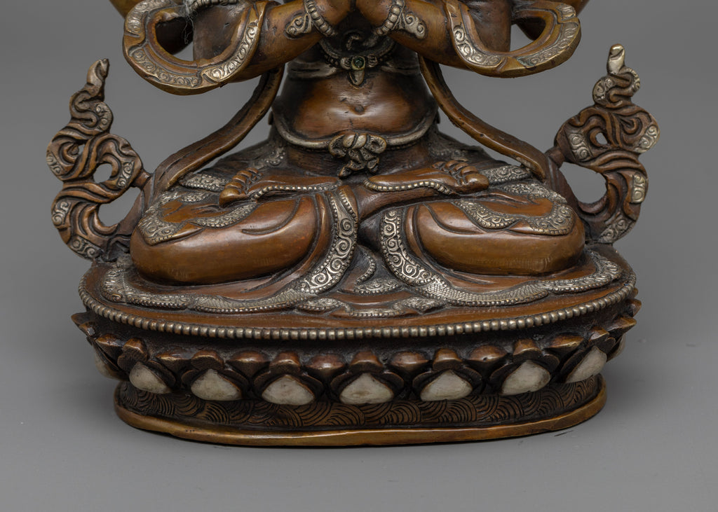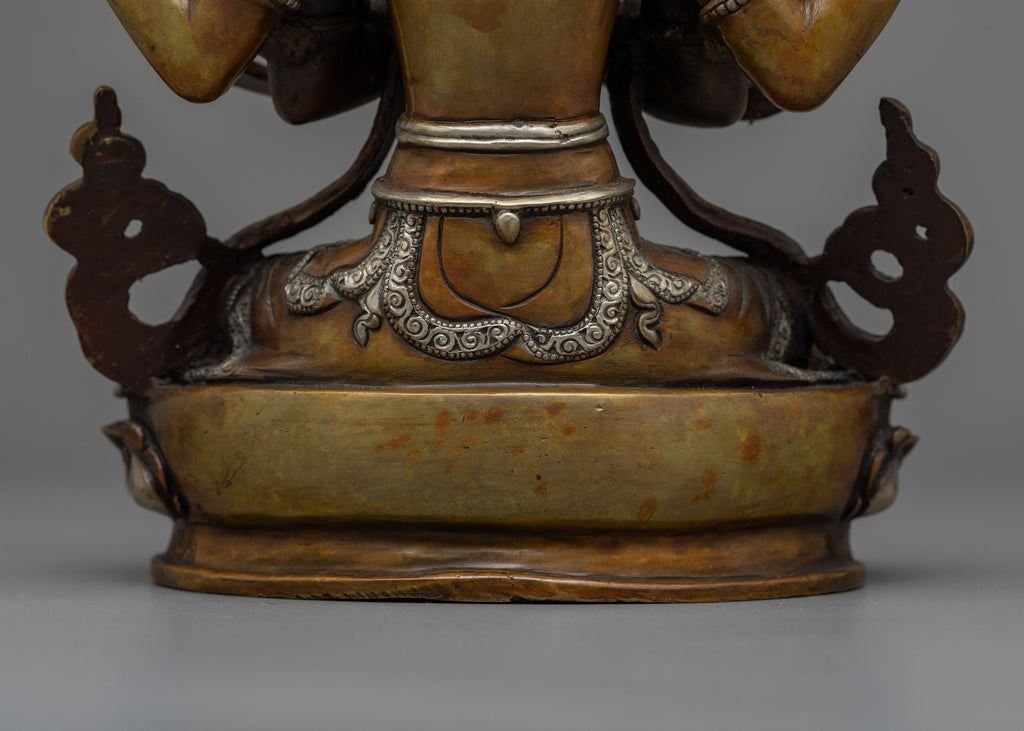 Spiritual Handmade Statue of Chenrezig in Oxidized Copper and Silver