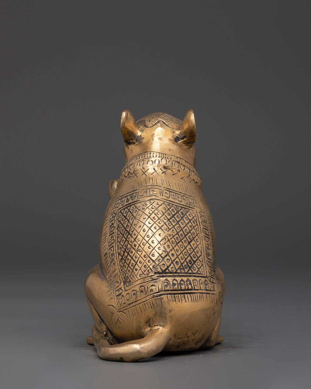 The design features intricate detailing along the body, with engraved motifs that reflect cultural artistry and spiritual depth. The mouse’s gentle expression and poised posture represent loyalty, purity, and the readiness to serve the divine. In various traditions, the mouse is revered as a sacred vehicle of deities and a symbol of abundance and knowledge. The brass mouse statue radiates auspicious energy, serving as a reminder of mindfulness, dedication, and humility.