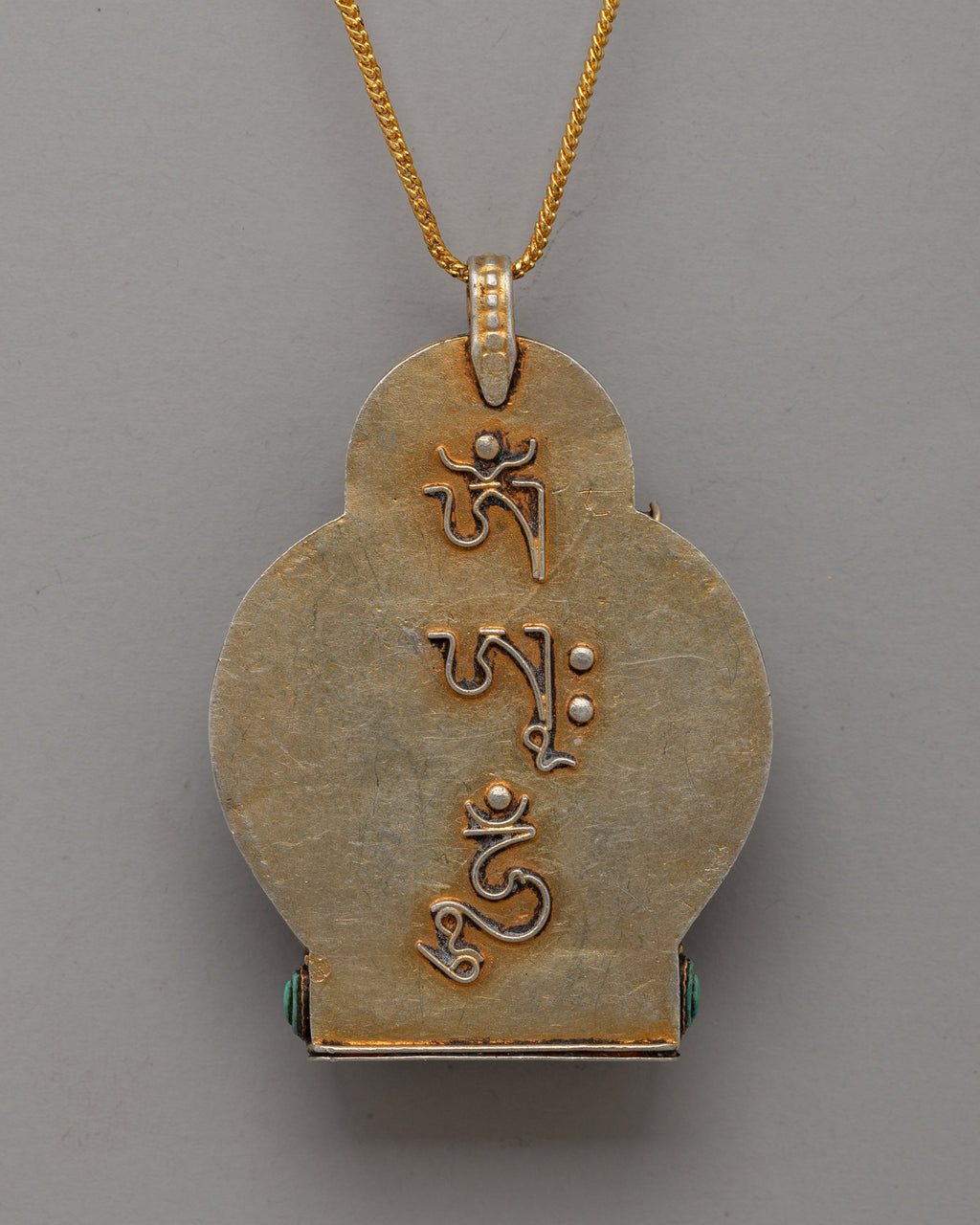 A Buddhist locket is a piece of jewelry designed to hold a small prayer, mantra, or image related to Buddhist practice. The locket may have a design or image of a Buddhist deity, such as the Buddha, or an image of a sacred symbol, such as the lotus flower. It is typically worn as a talisman to remind the wearer of their spiritual path and to offer protection. Some Buddhist lockets are also used as a form of religious devotion and are frequently given as gifts to friends and family members to provide them with spiritual support and blessings.