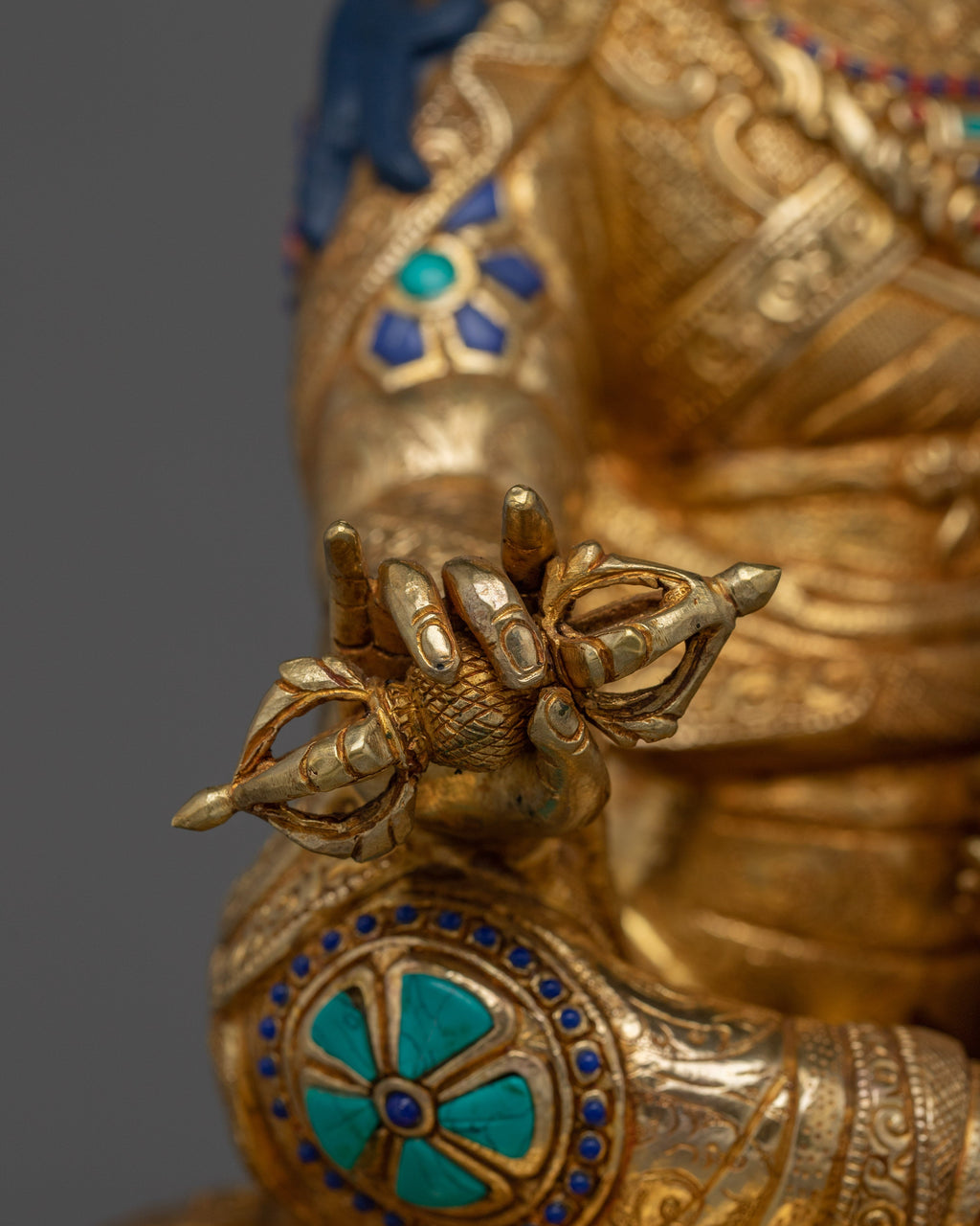 Material: 24K Gold Gilded, Gold & Acrylic Paintings, Copper Body, Handcarved Gemstones