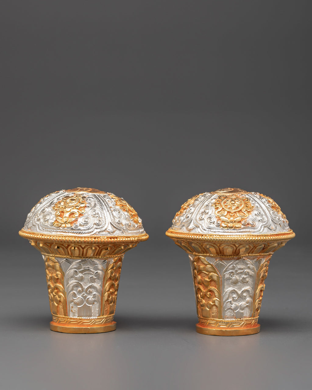 Handcrafted Spiritual Tibetan Stick Cap with Silver and Gold Plating for Ritual Practice