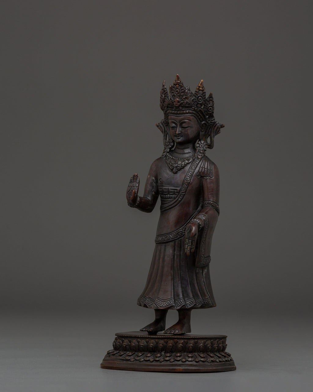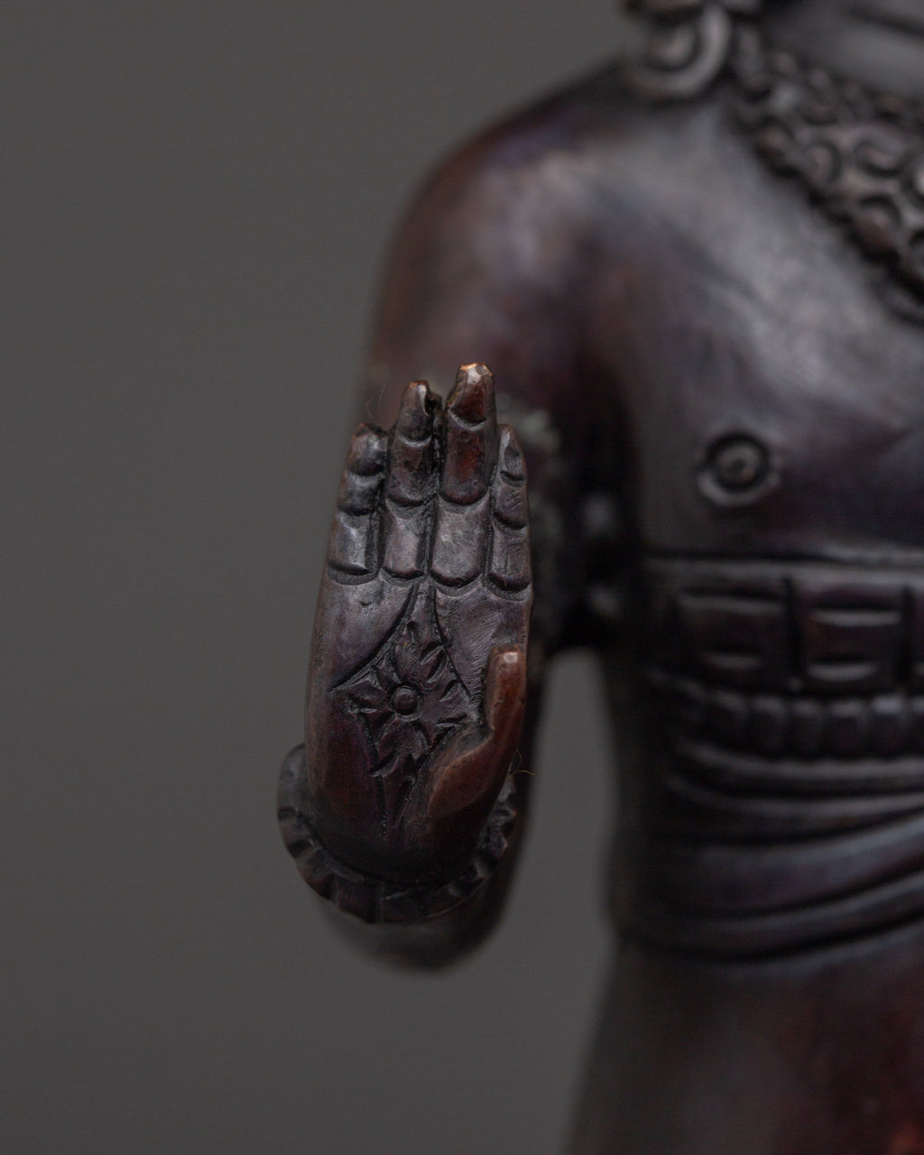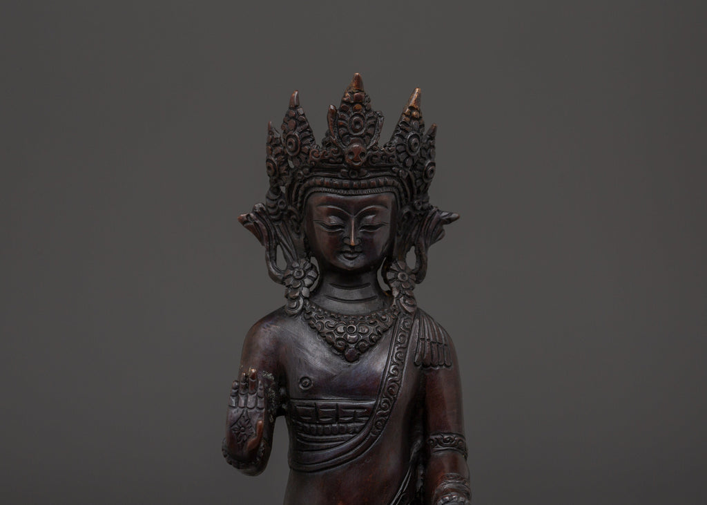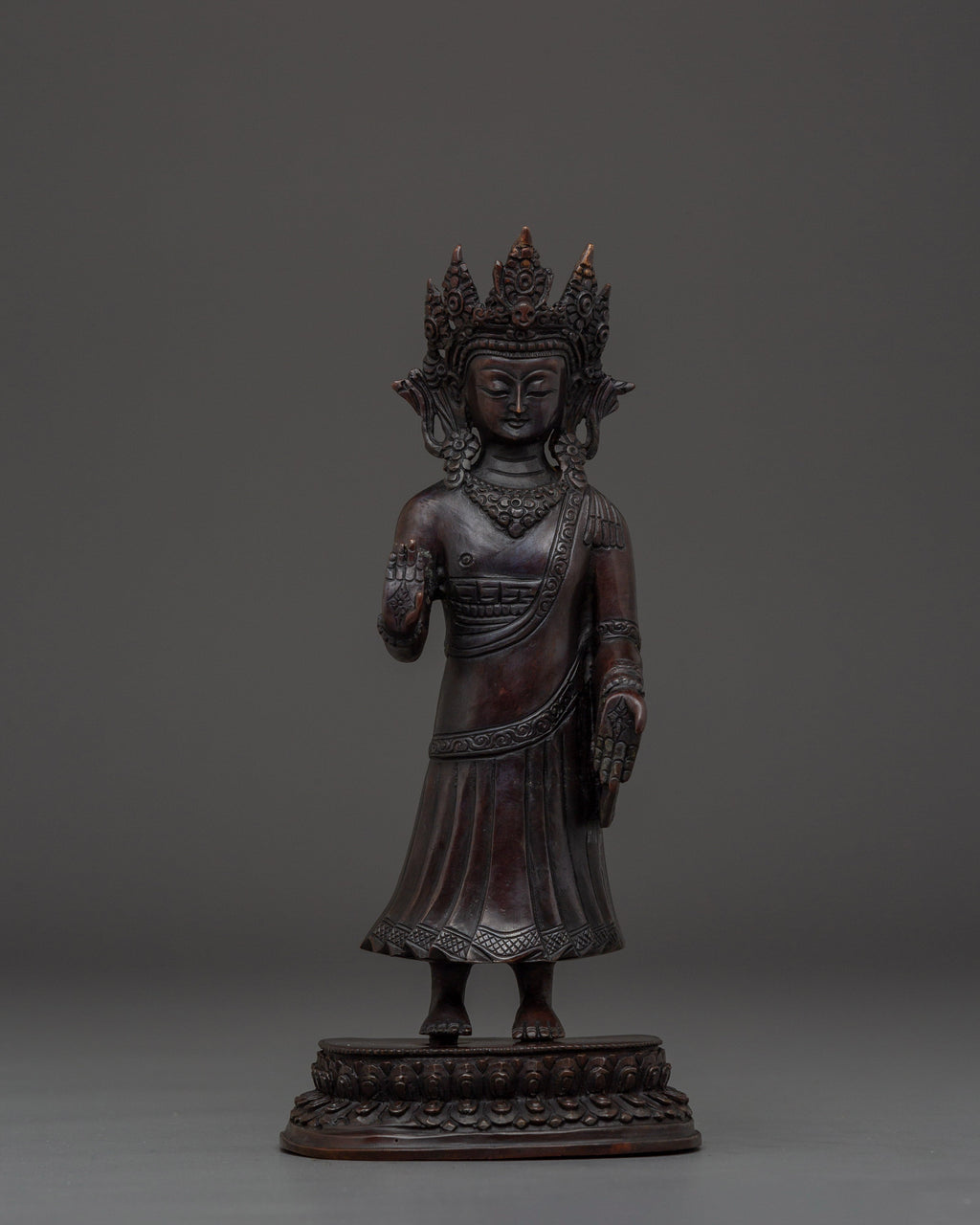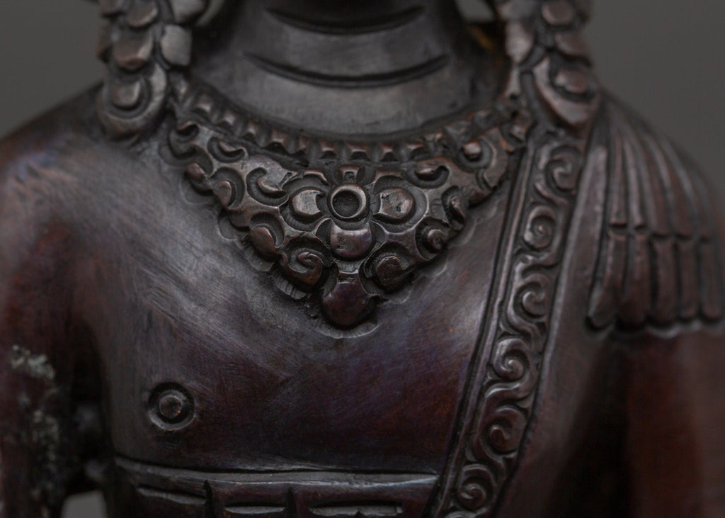 The oxidized copper material enhances its appearance while symbolizing grounding, protection, and spiritual strength. Ideal for meditation areas, altars, or sacred corners, this statue serves as a visual reminder of mindfulness, peace, and the pursuit of enlightenment. Its presence not only elevates the aesthetic of your space but also adds a sense of spiritual harmony.