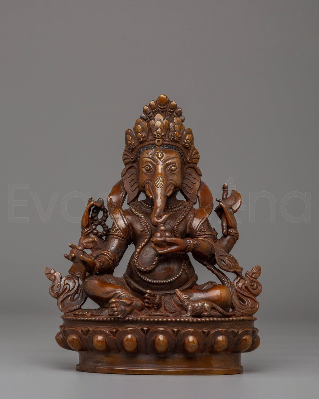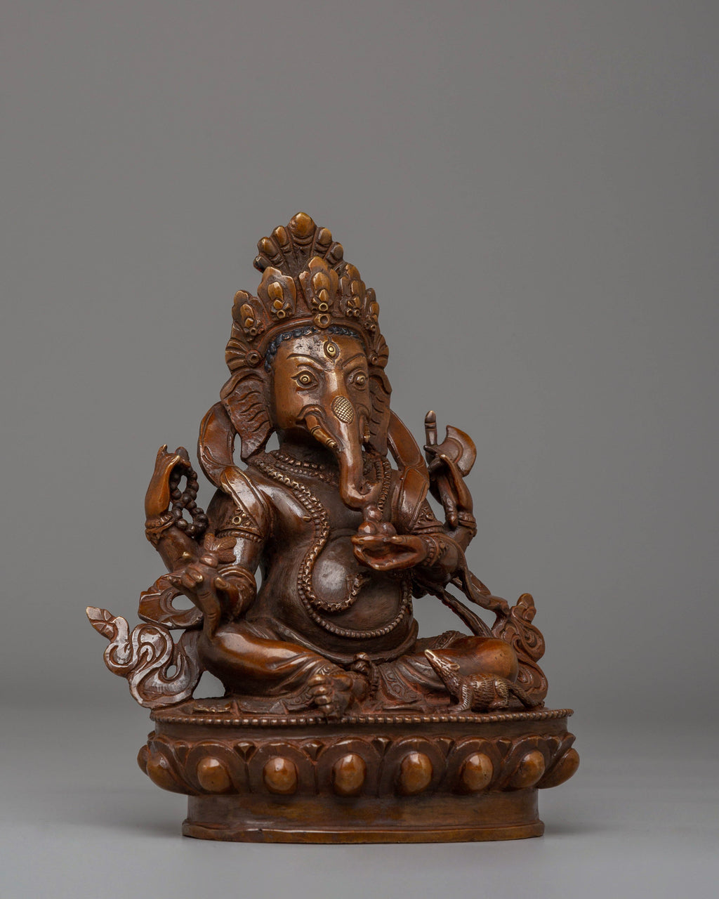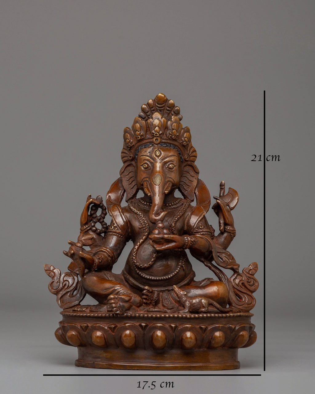 Lord Ganesha Statue | Oxidized Copper and Hand-Painted Details