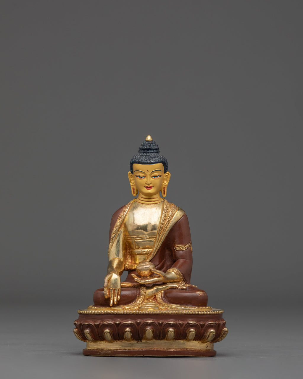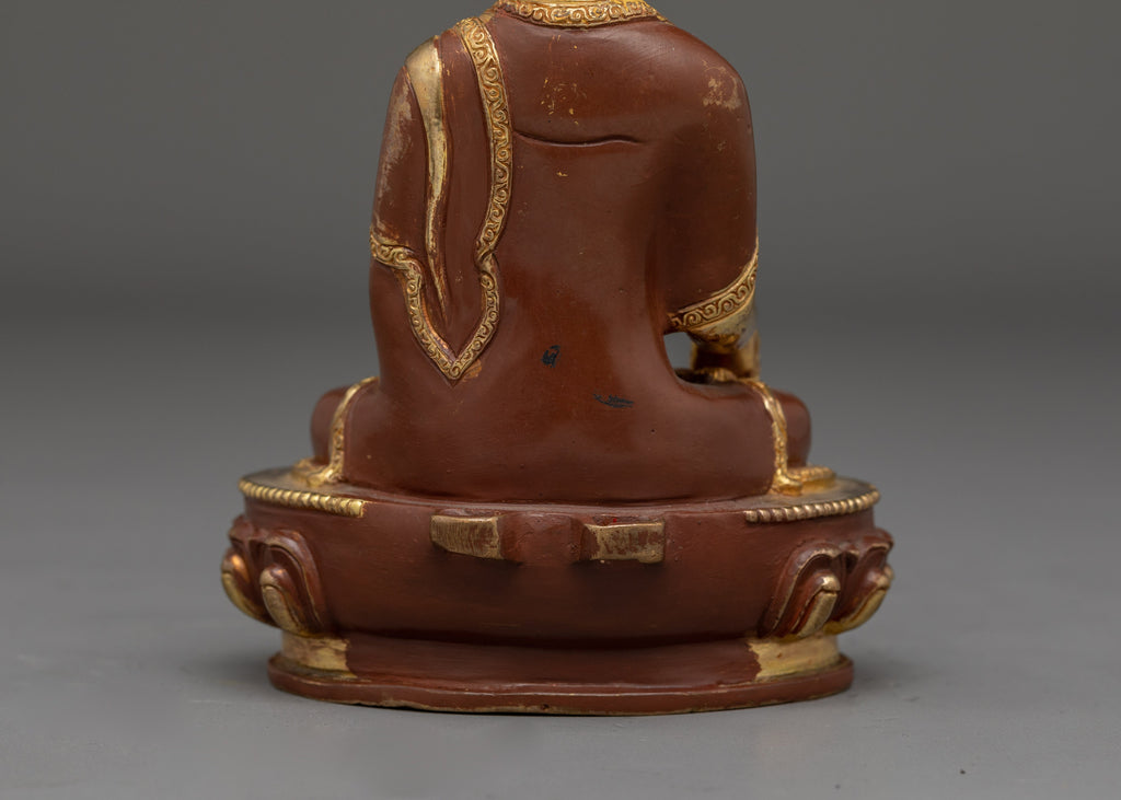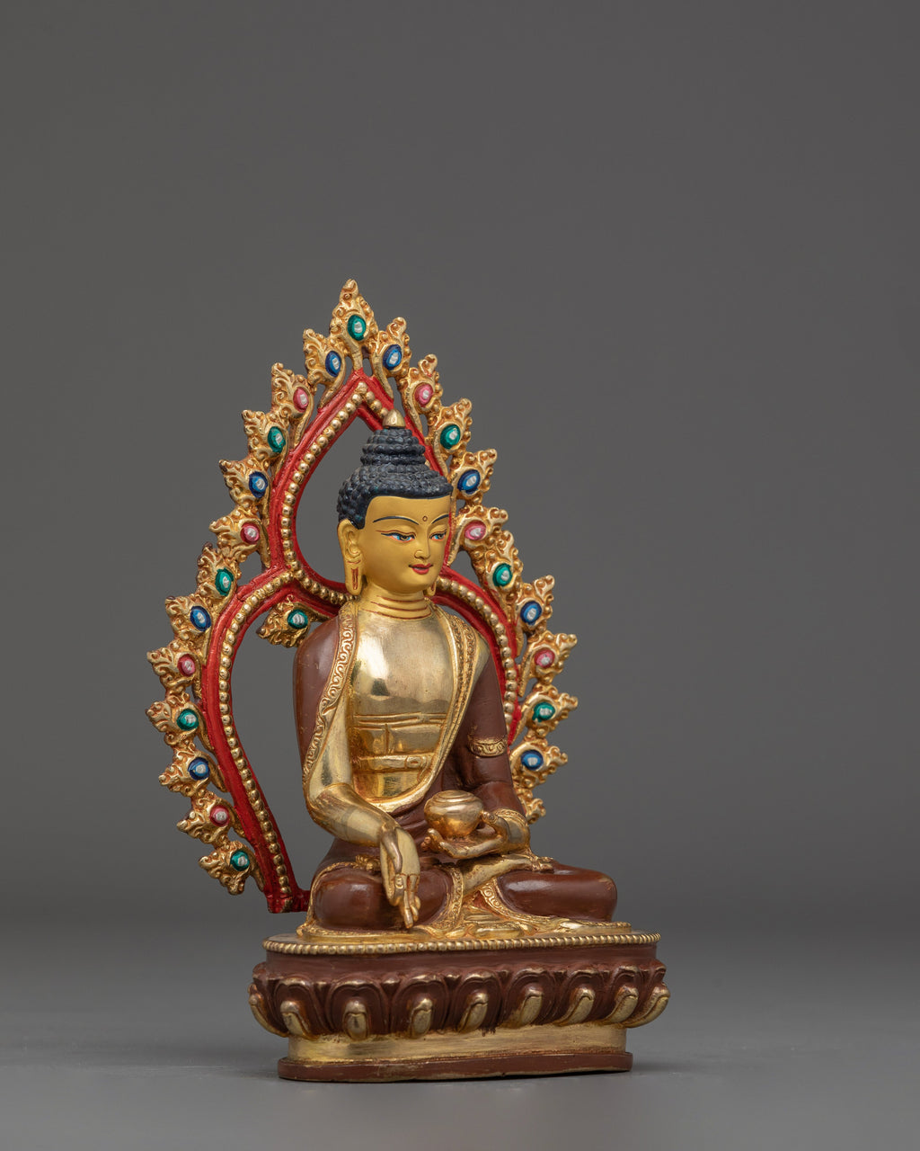 The exquisite gold-plated copper body and gemstones surrounding the halo enhance the symbolism of Ratnasambhava's qualities—the golden color represents the purity of wisdom. At the same time, the ornate embellishments and gems signify the blessings he bestows upon his followers. This Buddha statue is an excellent centerpiece for meditation rooms, shrines, and spiritual spaces, reminding practitioners of the values of compassion, kindness, and wisdom.