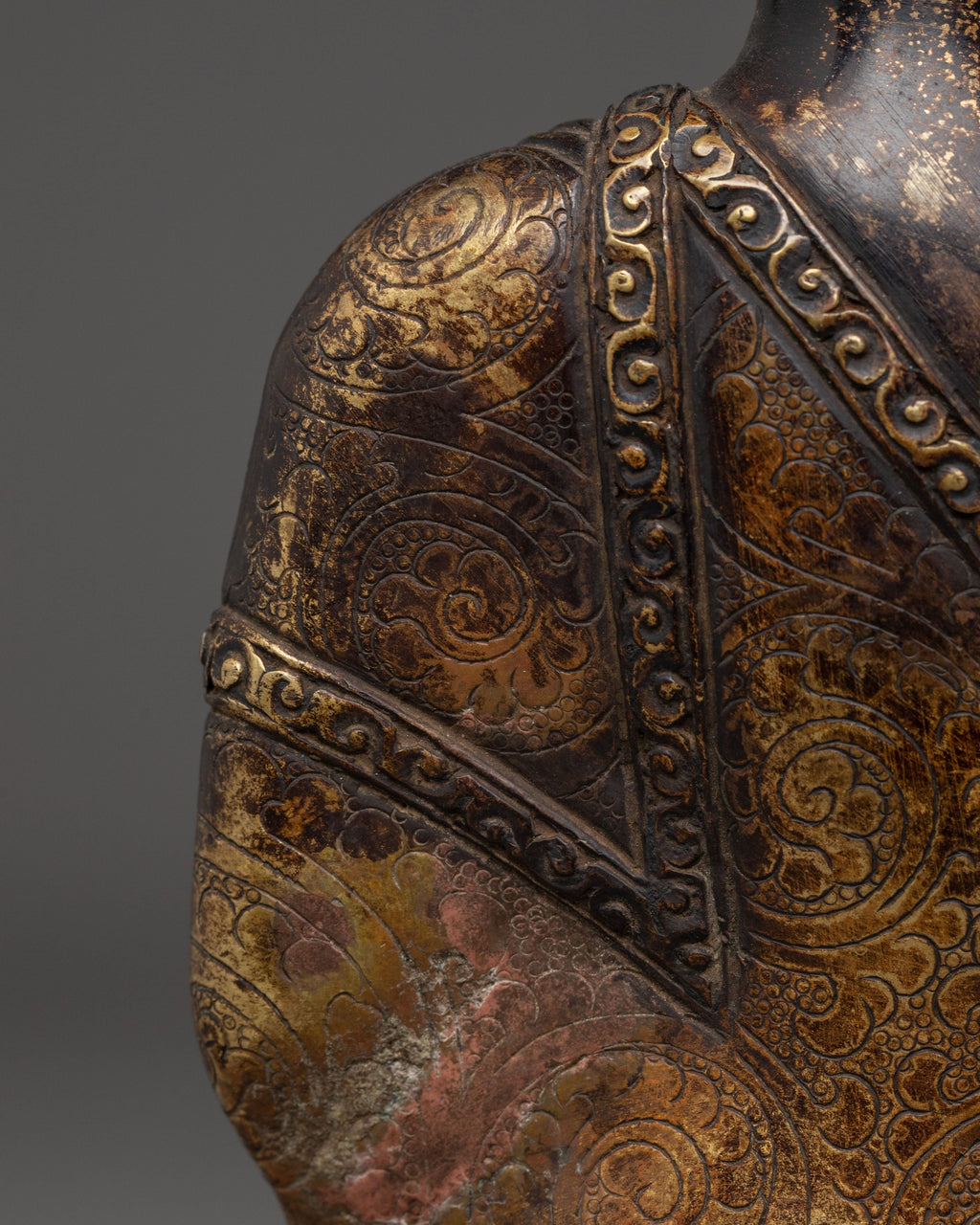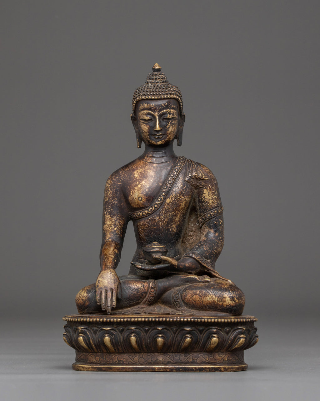 The oxidized copper craftsmanship showcases great Tibetan creativity, with subtle golden hues representing the brilliant essence of enlightenment. The statue's delicate lotus pedestal represents purity and spiritual elevation, making it an excellent focal point for meditation rooms, personal altars, or holy settings. The delicate shine of the copper patina captures light brilliantly, sending tranquil energy throughout any setting. This Buddha of Light statue is not just a symbol of enlightenment, but also an encouragement to cultivate awareness and compassion in daily life. Shakyamuni Buddha, often known as the Buddha of Light, represents the pinnacle of wisdom and compassion in Buddhism. His image is thought to remove darkness, both inner and exterior, providing peace, healing, and clarity to the practitioner.