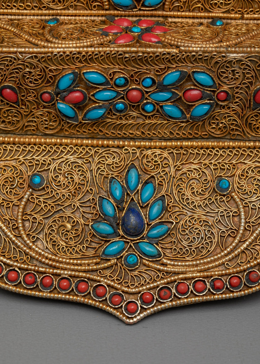 Material: 24K Gold Gilded, Gold & Acrylic Paintings, Copper Body, Handcarved Gemstones
