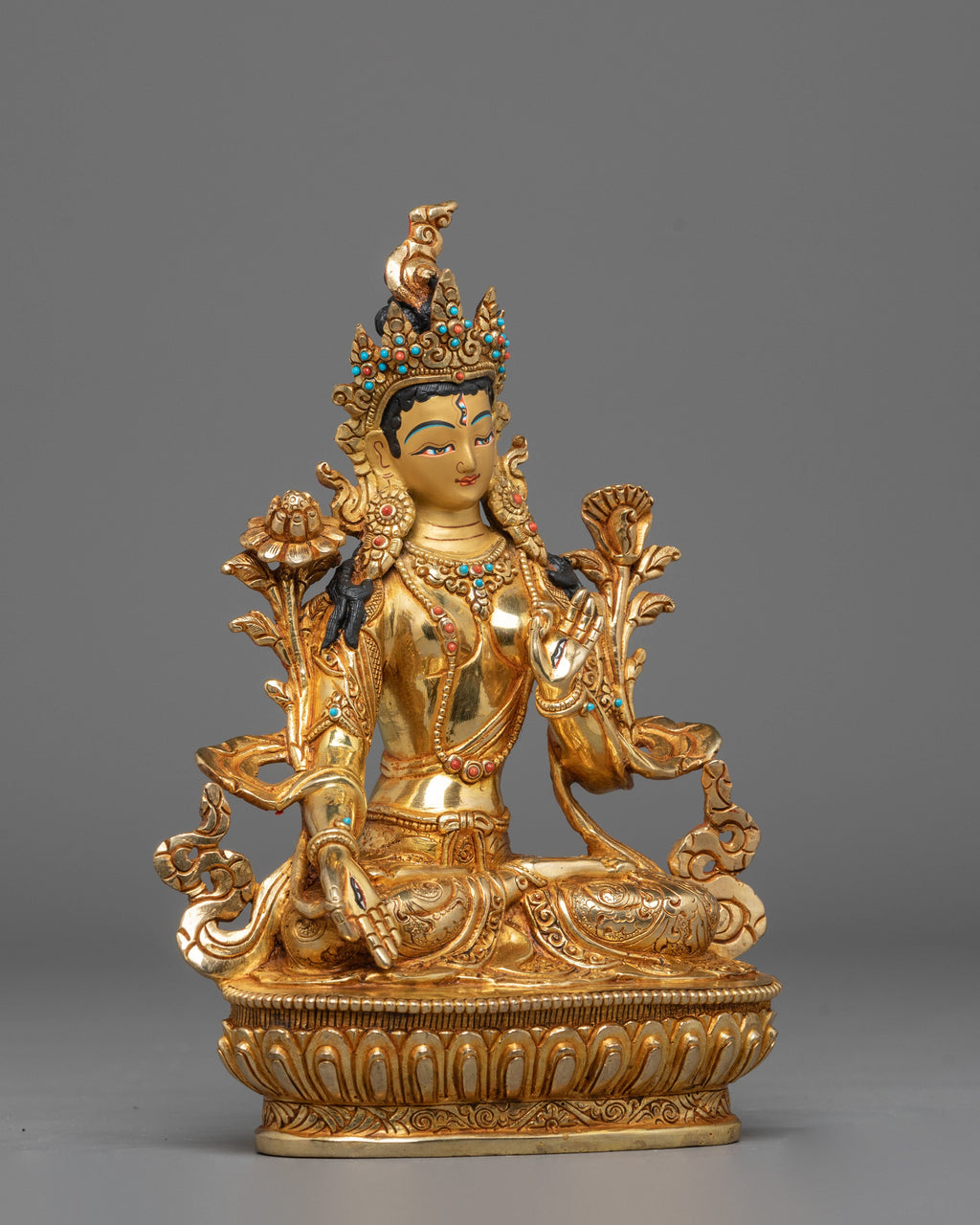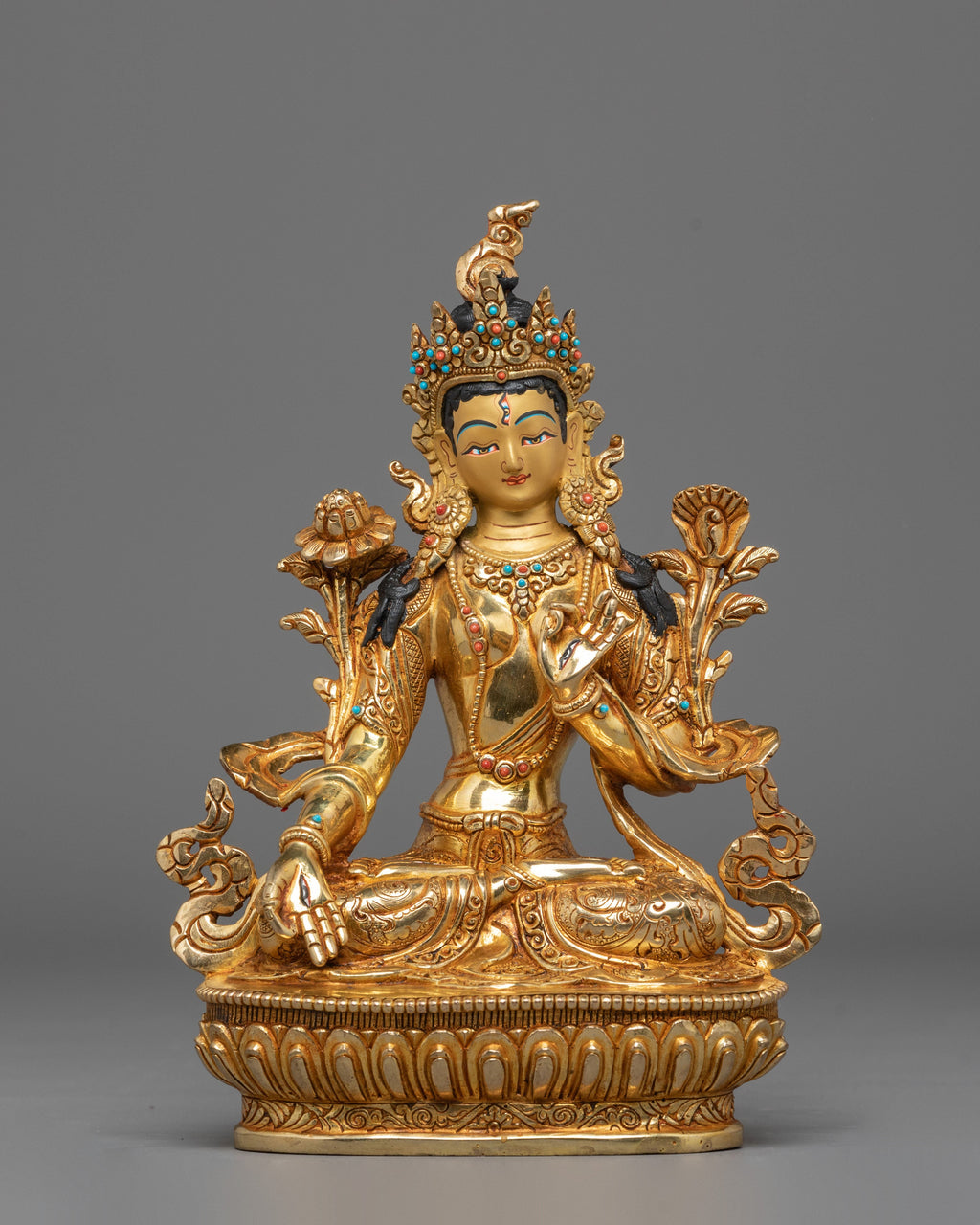 Sita Tara Statue | Spiritual Goddess Figurine with Coral & Turquoise Details
