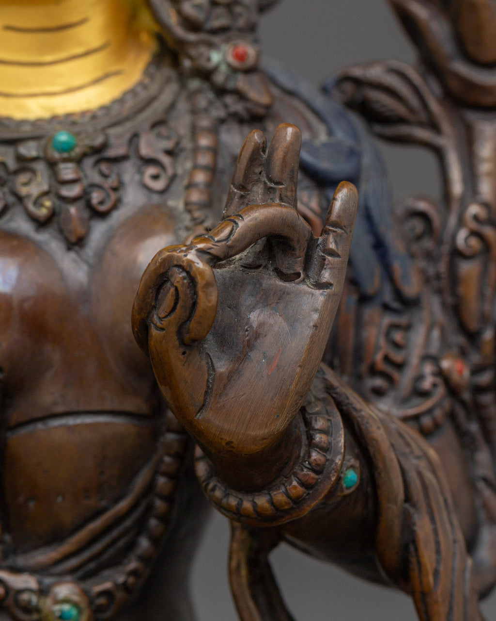 Copper Statue of White Tara: Tibetan Healing Goddess