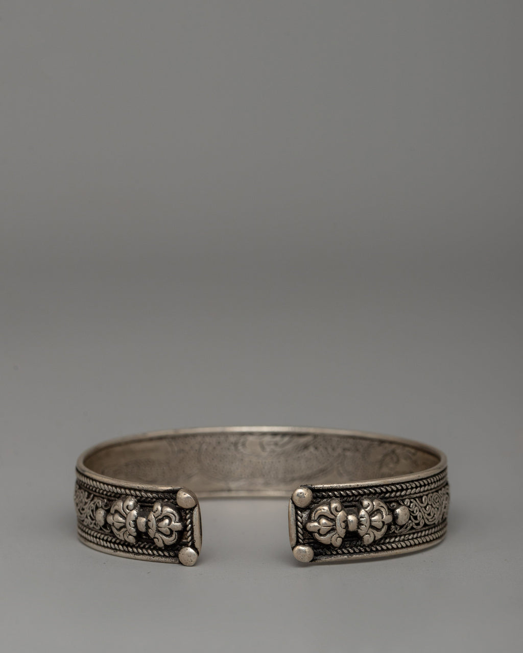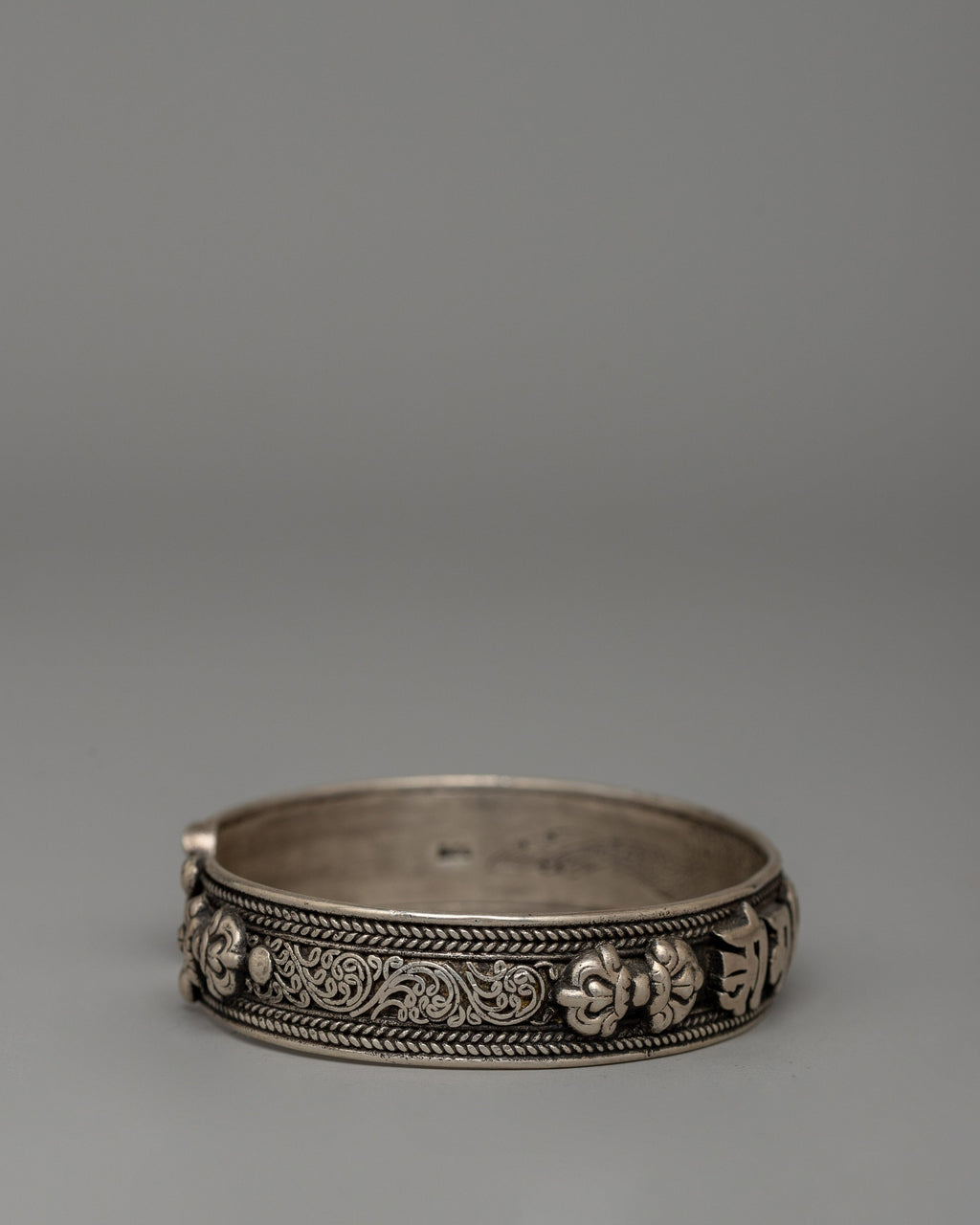 Sterling Silver Mantra Bracelet - Tibetan “Om Mani Padme Hum” Cuff