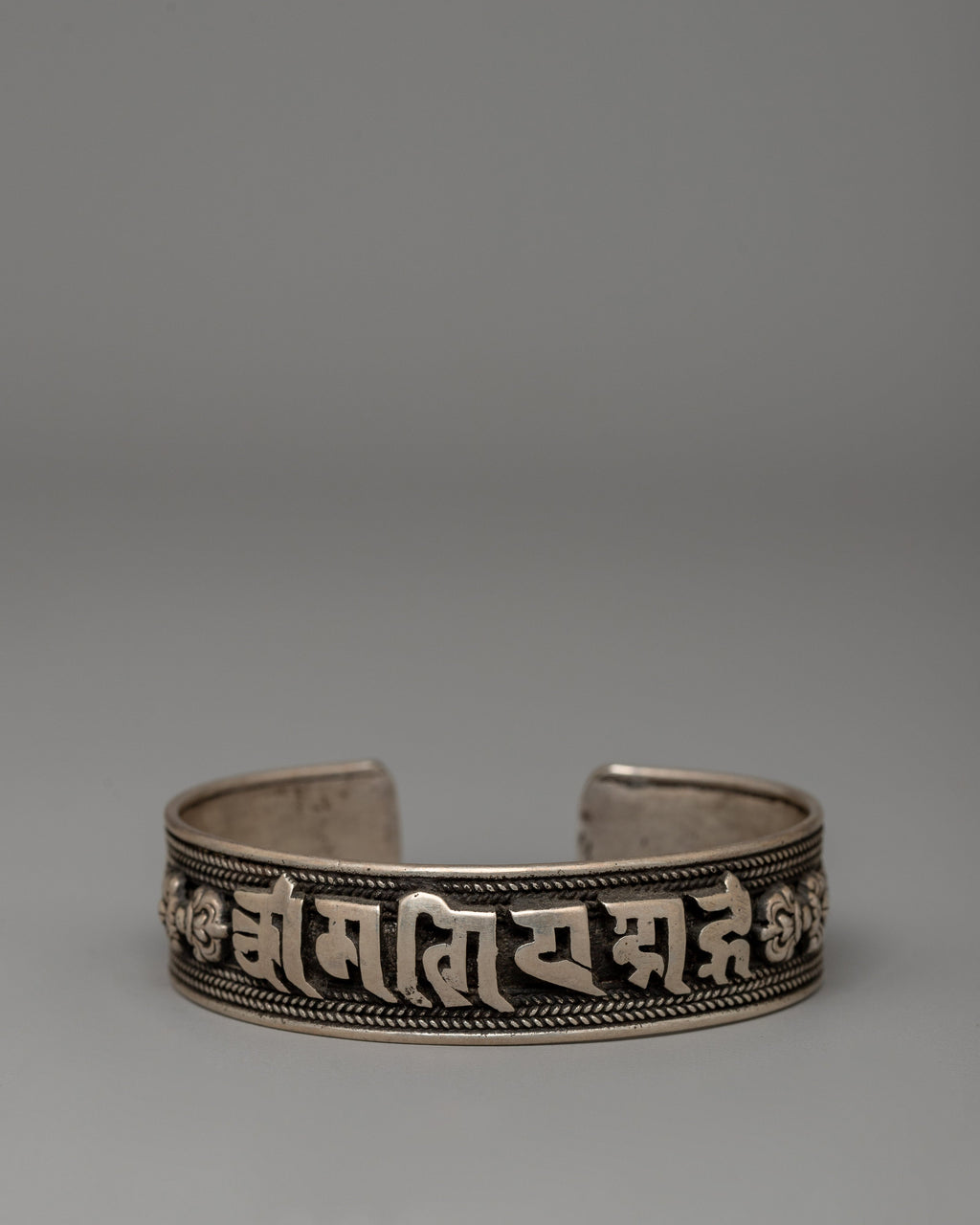 Sterling Silver Om Mani Padme Hum Bracelet - Tibetan Spiritual Cuff