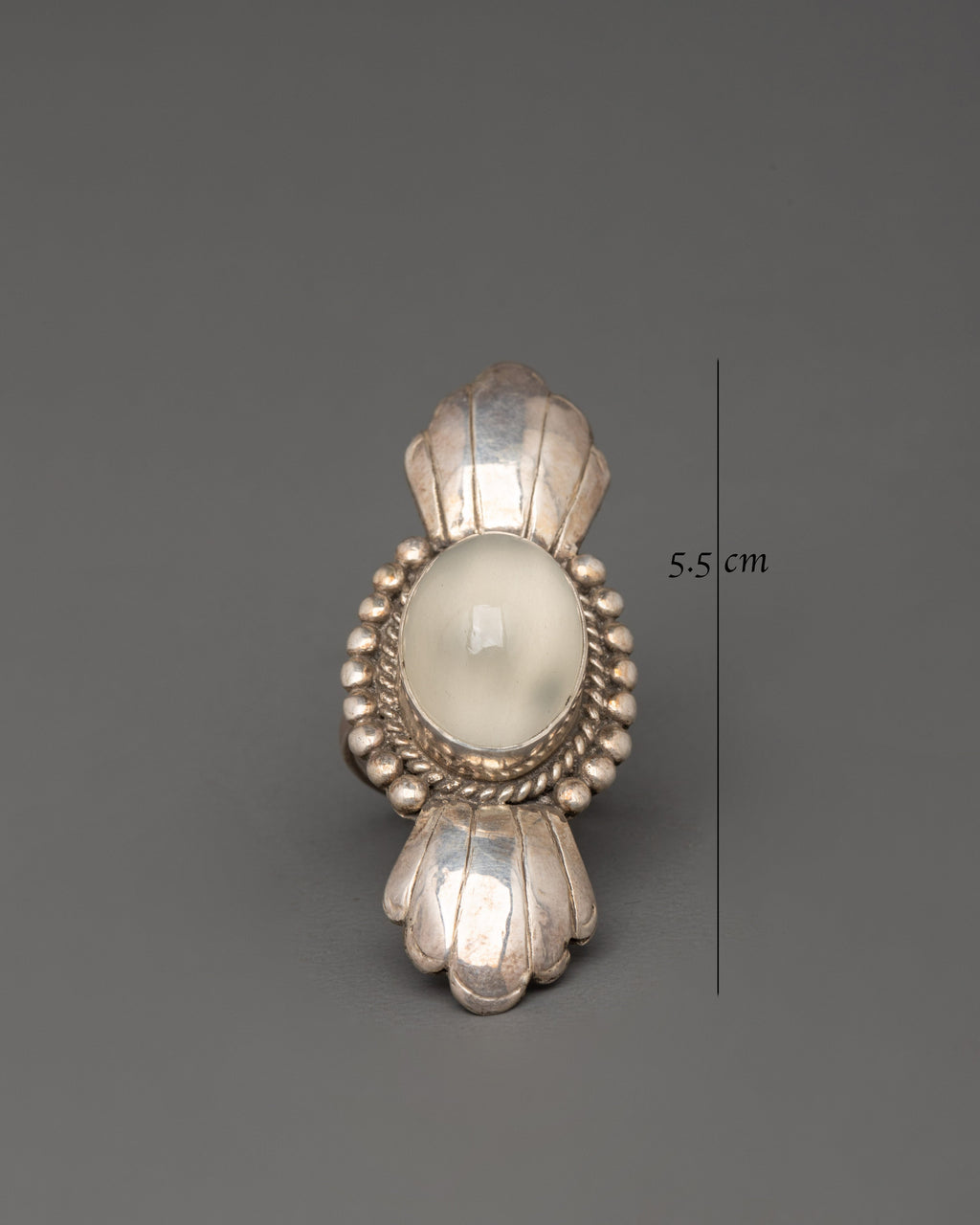 This Sterling Silver Ring with Artificial Stone is a stunning handcrafted piece of jewelry that exudes elegance and sophistication. This gorgeous ring is made of high-quality silver and has a stunning artificial stone for added shine and charm. With a height of 5.5cm and a diameter of 1.8cm, this lightweight yet dramatic item is appropriate for casual and formal settings.