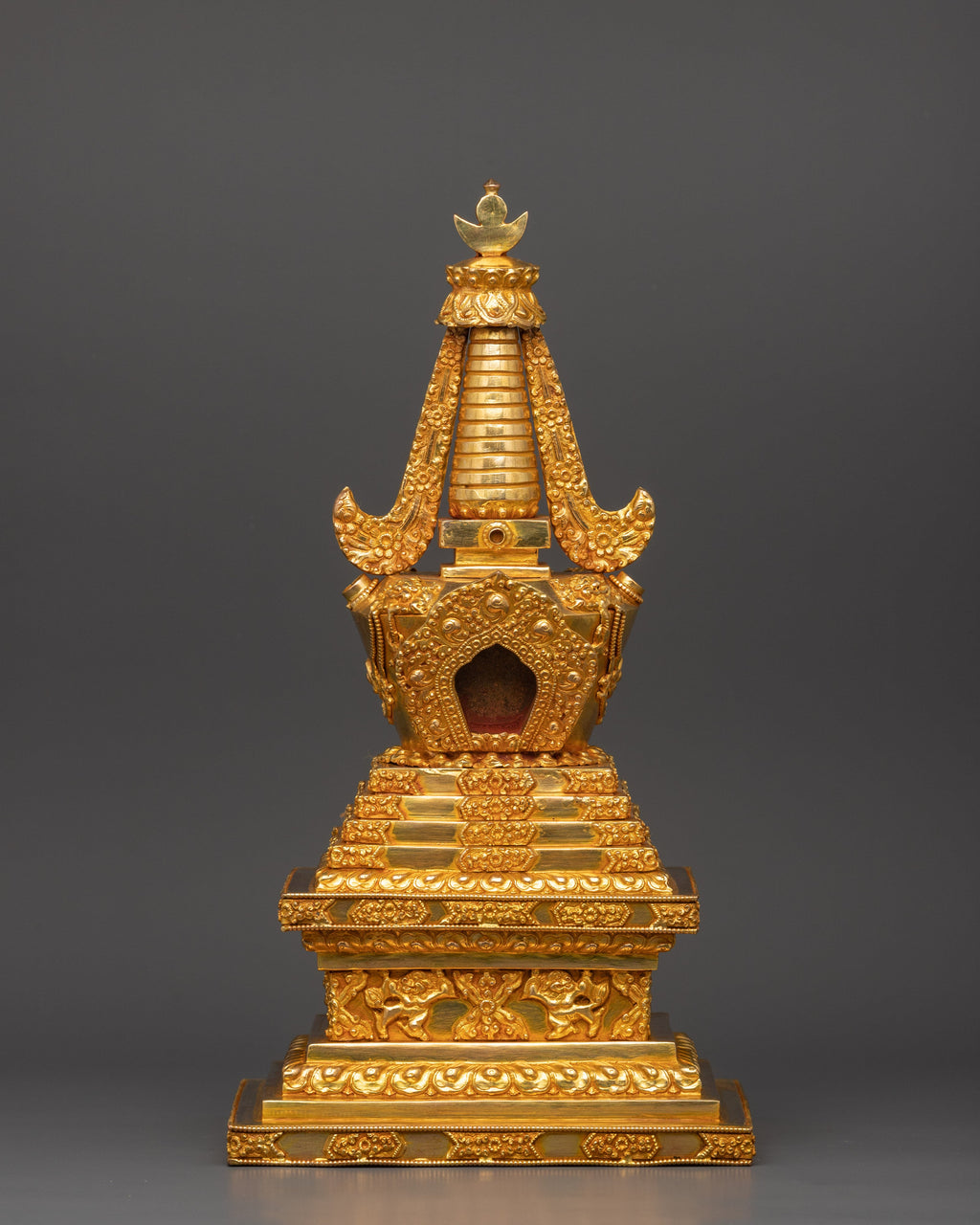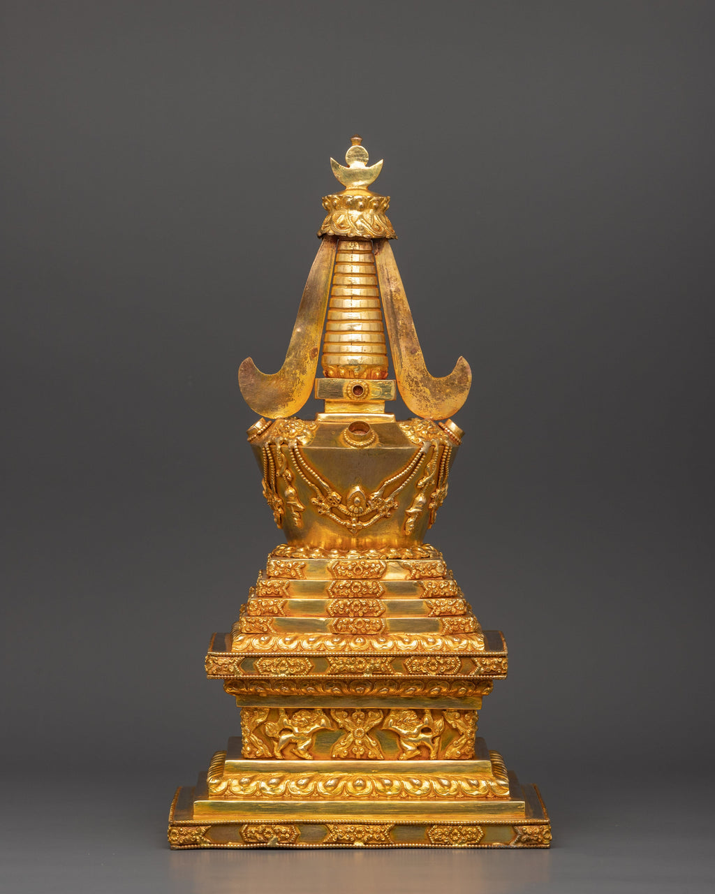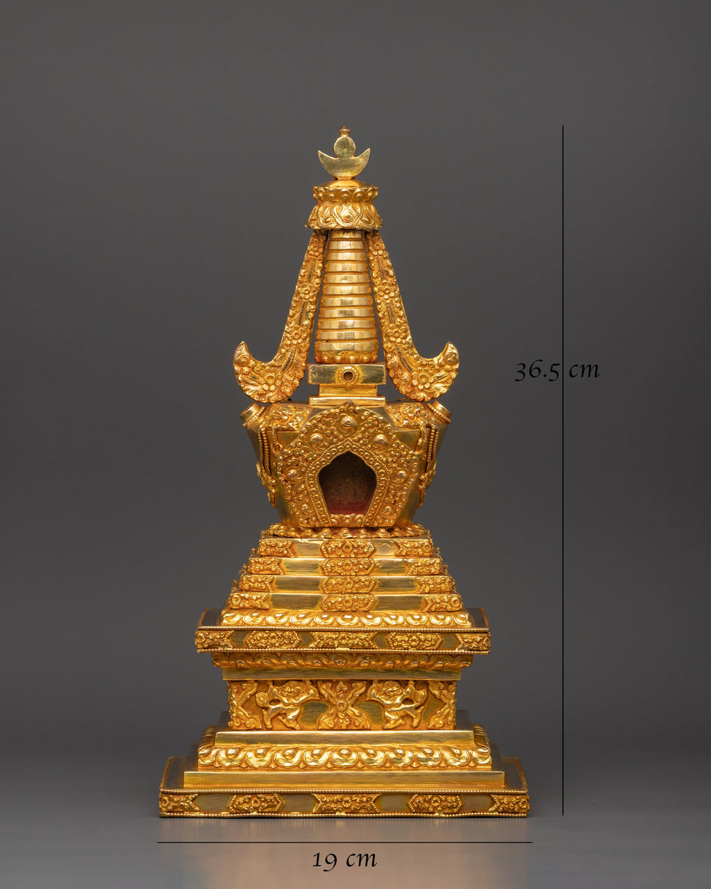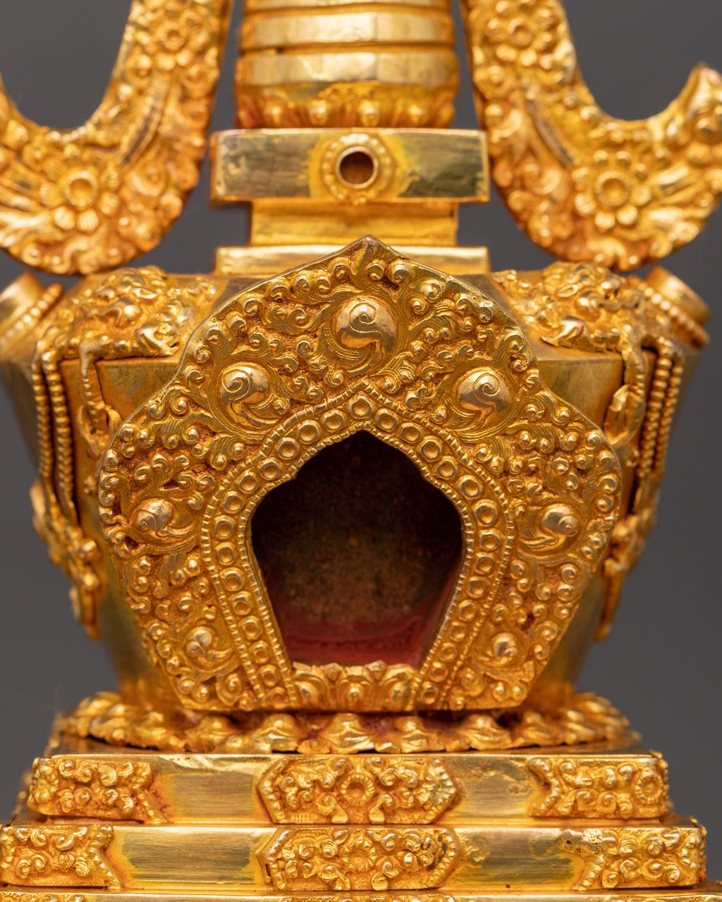 Handcrafted Gold Plated Stupa | Sacred Buddhist Ritual Item for Meditation and Altars