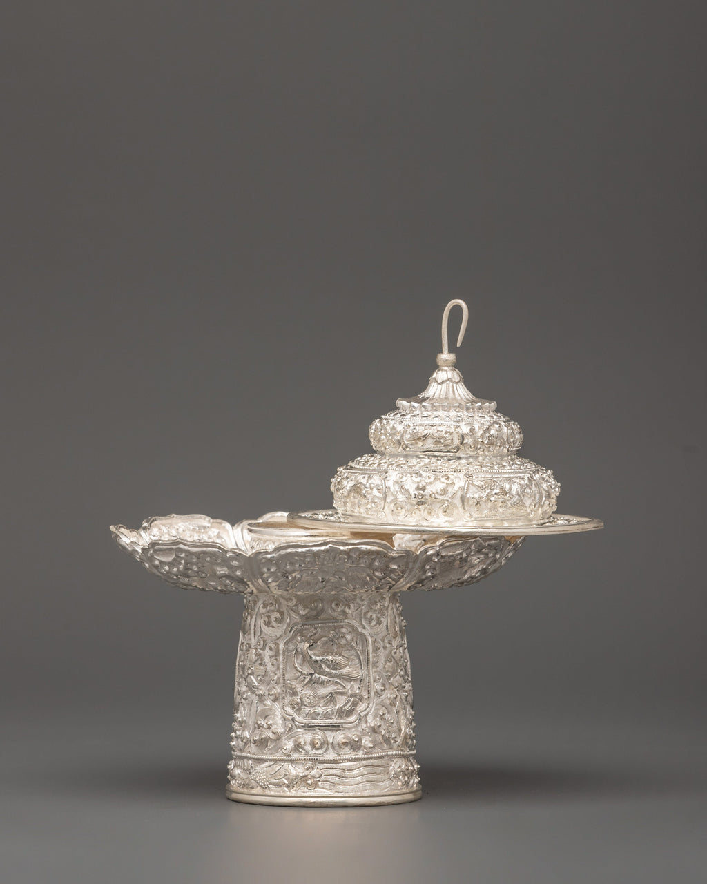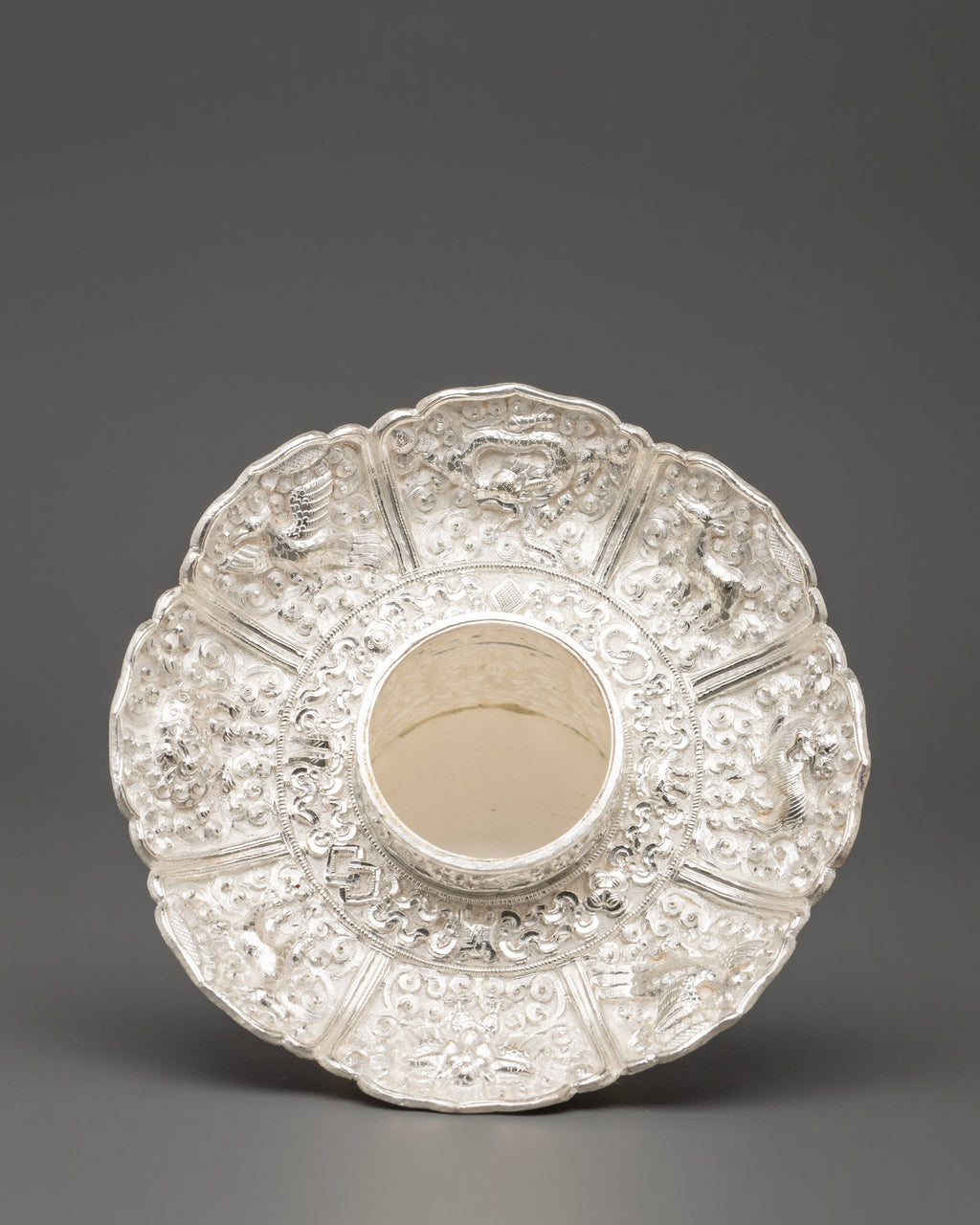 Tibetan Tea Pot Buddhist Home Decor | Spiritual Pure Silver Decorative Tea Offering