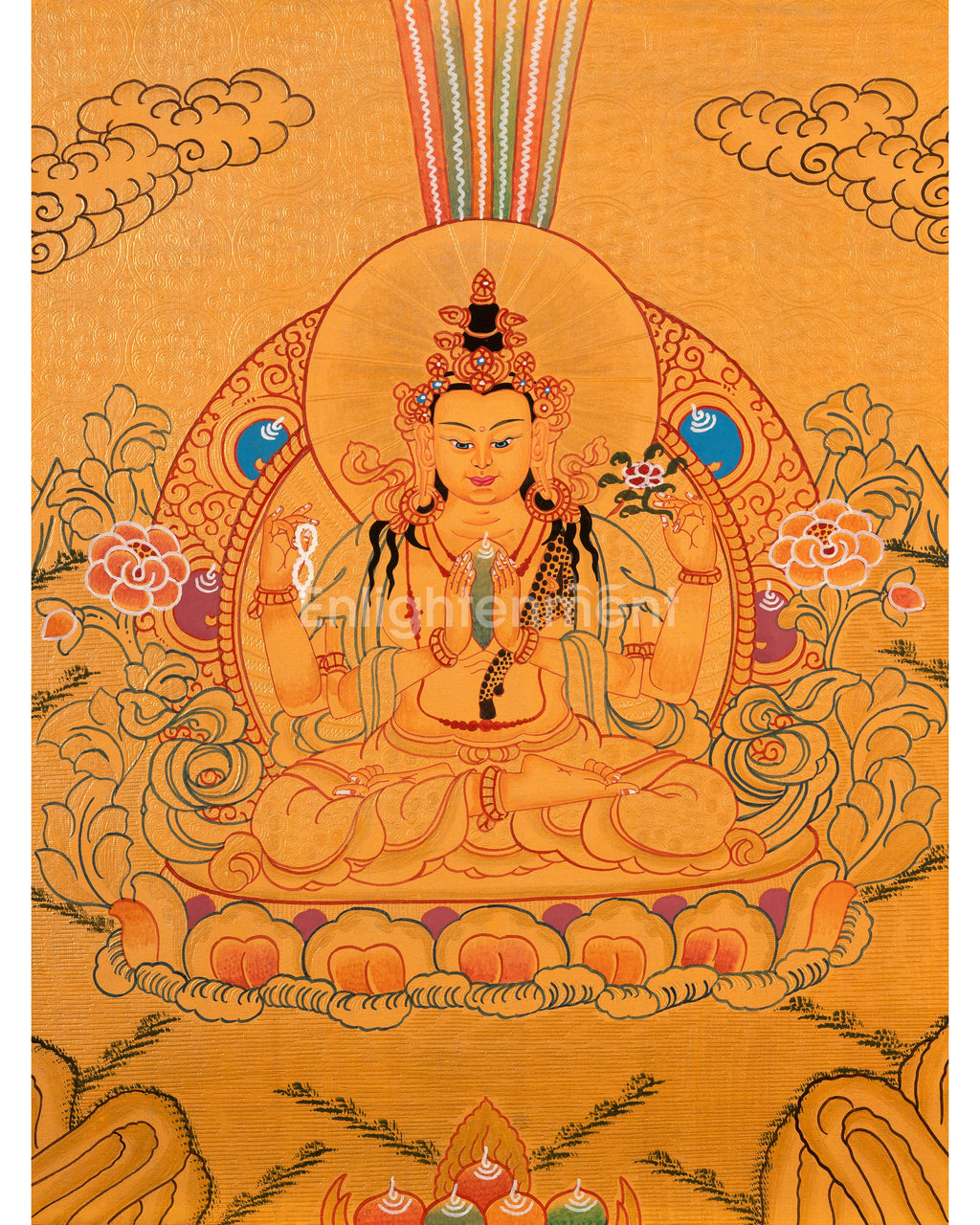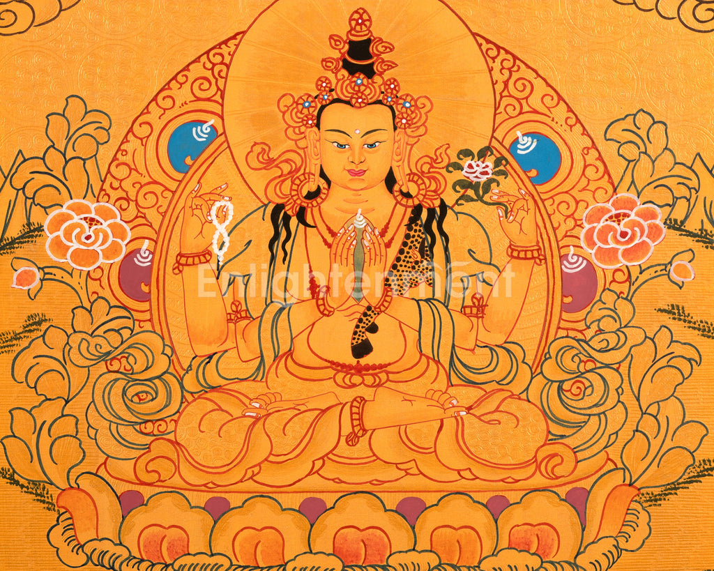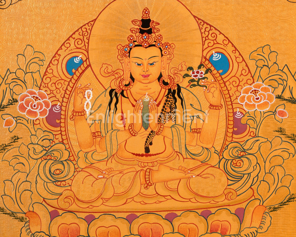 Thangka of Four-Armed Chenrezig | Symbolizing Love, Mercy, and Spiritual Awakening