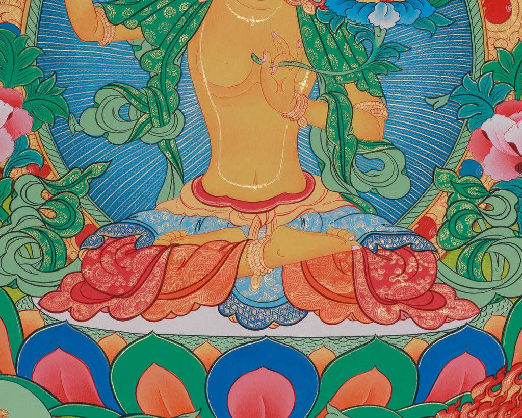 THIS THANGKA IS HAND-PAINTED IN THE TRADITIONAL STYLE BY A NEPALI ARTIST, AND THE QUALITY IS HIGH