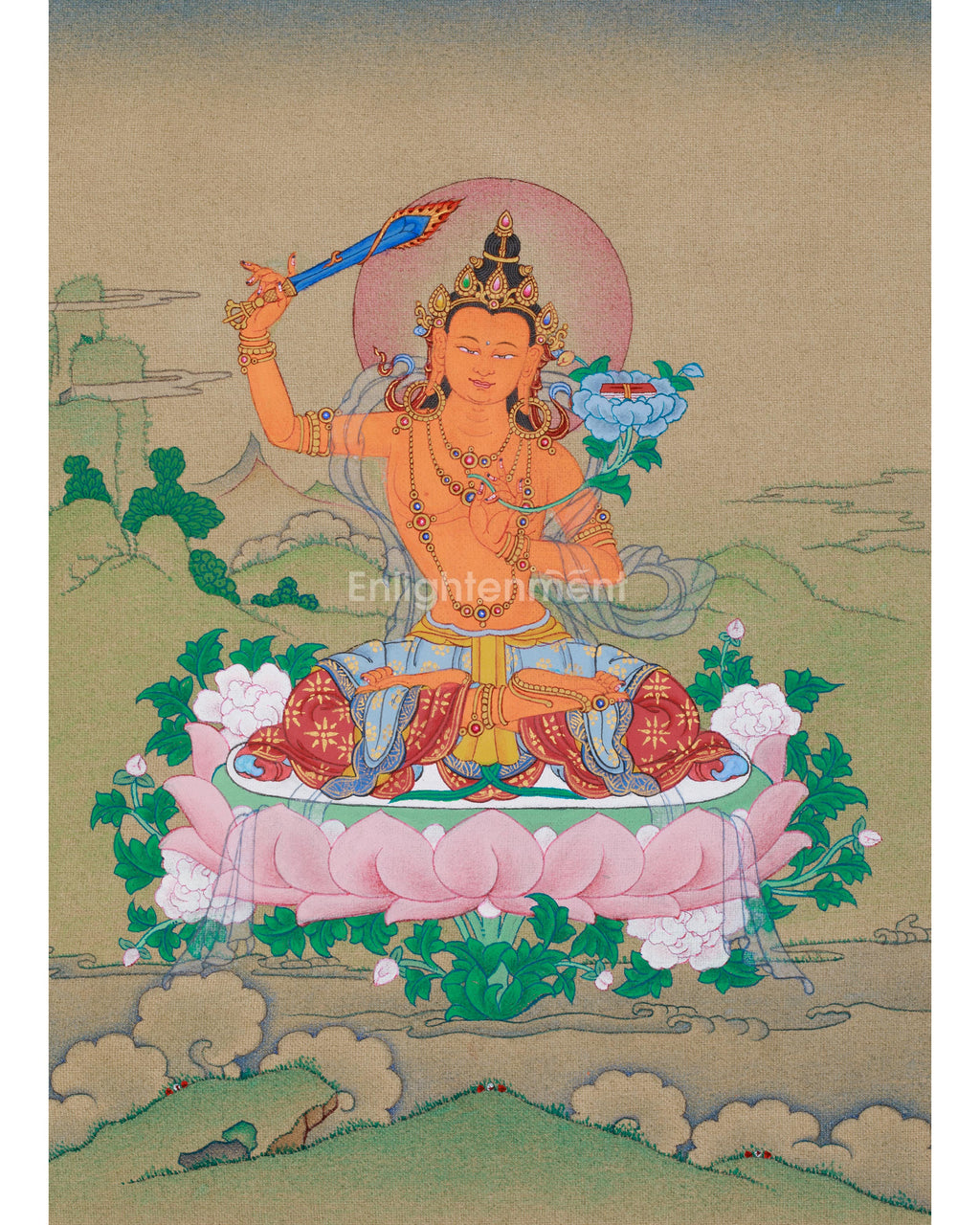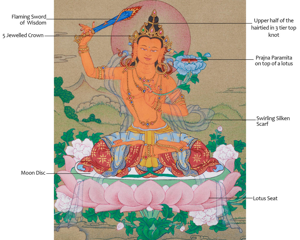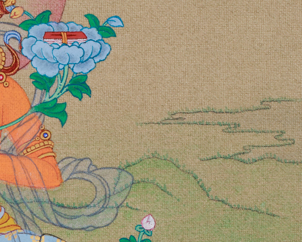 Sacred Thangka of Traditional Bodhisattva Manjushri | The Embodiment of Wisdom, Clarity, and Enlightened Understanding