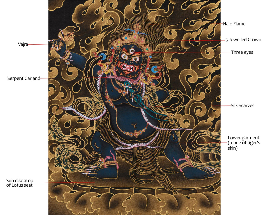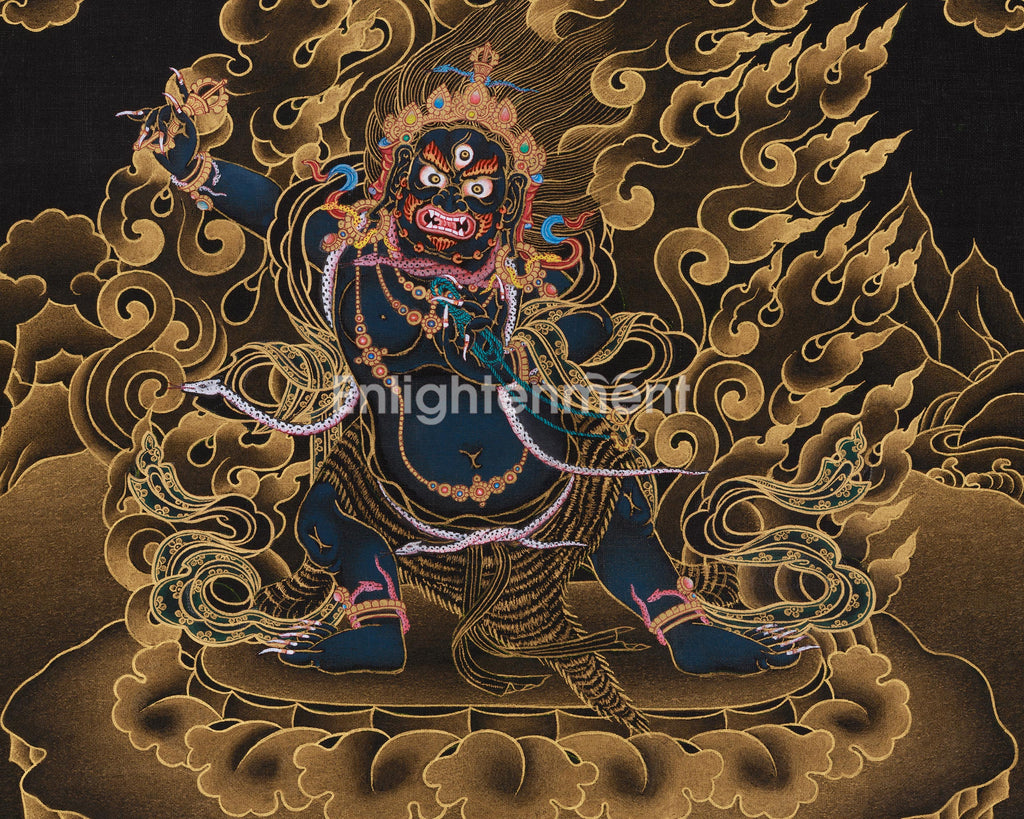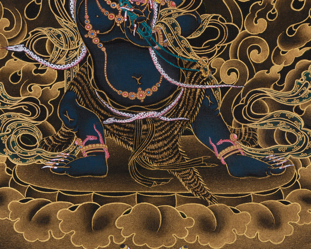 Gold on Black Thangka of Vajrapani | Protector of the Dharma
