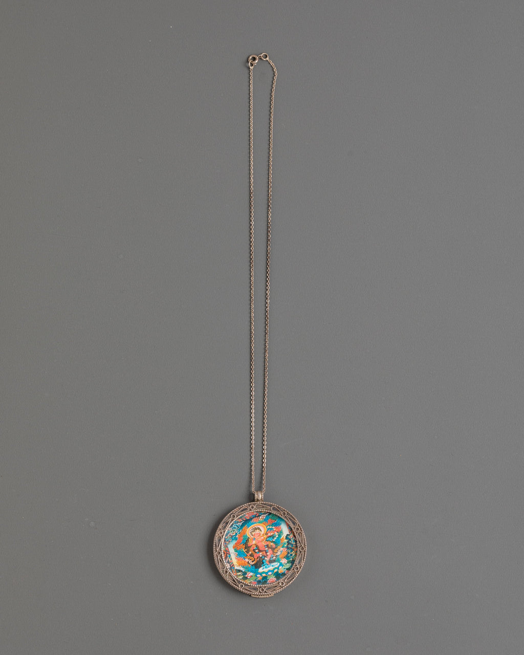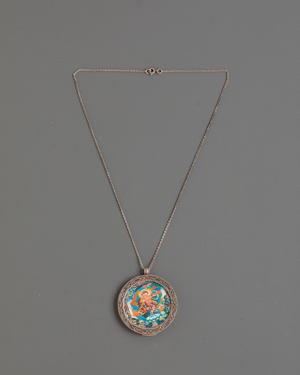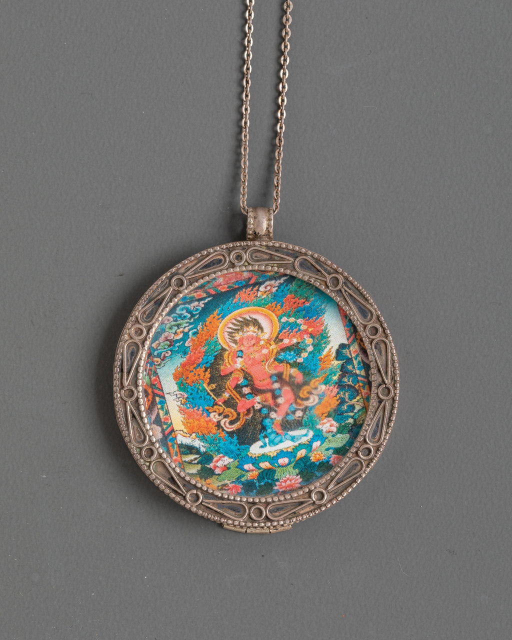 Exquisite Thangka Print Kurukulla Pendant | Sacred Silver Pendant for Protection and Energy