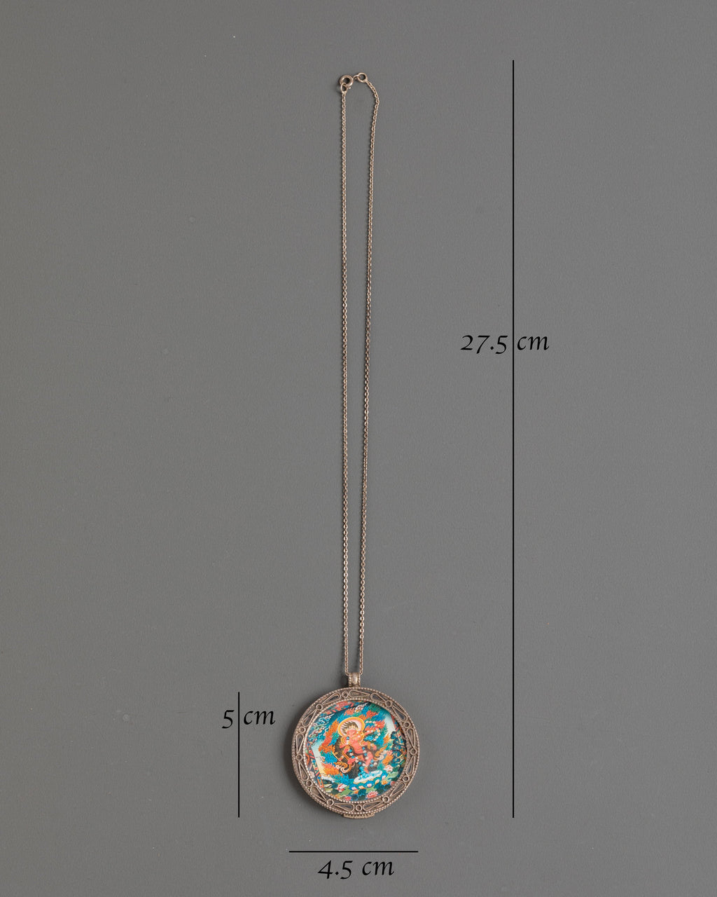 The Thangka Print Kurukulla Pendant is handcrafted with care and features delicate Thangka details. The silver frame gives a luminous and spiritual touch. Kurukulla is shown in her typical stance, which represents passion, dedication, and transformational force. Wearing this pendant close to the heart allows practitioners to carry her protecting and uplifting energy throughout the day, which improves meditation, focus, and spiritual rituals. The mix of silver with sacred artwork has both visual appeal and spiritual significance. Perfect for spiritual practitioners and enthusiasts, the Thangka Print Kurukulla Pendant serves as a meaningful talisman for protection, energy, and spiritual connection. It can be worn daily or during meditation and rituals to strengthen one’s connection with Kurukulla’s transformative power.