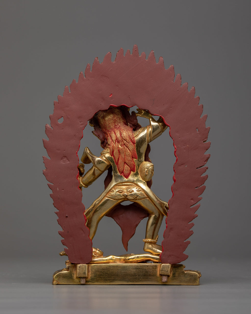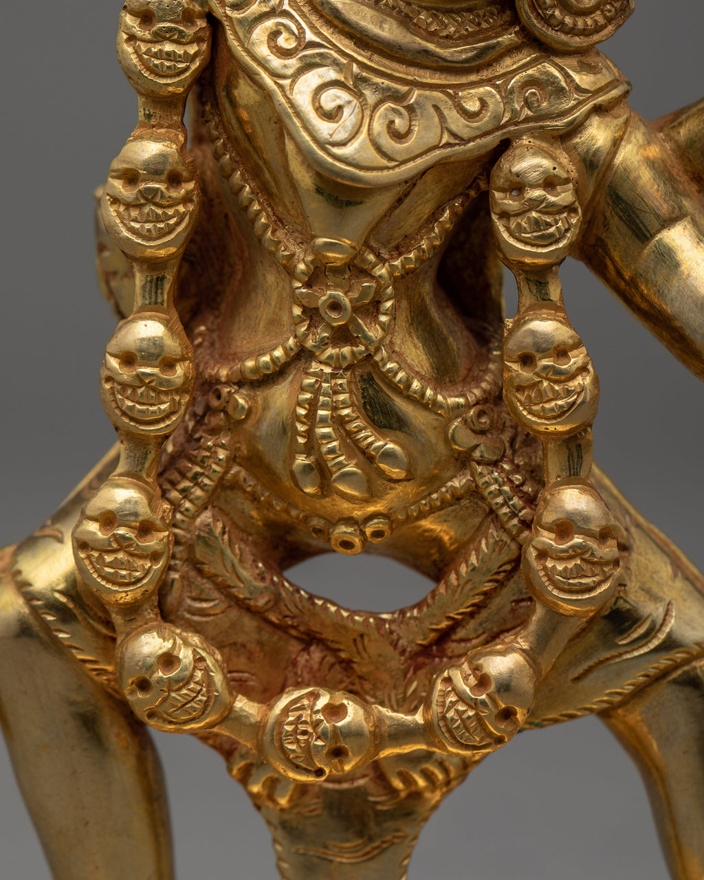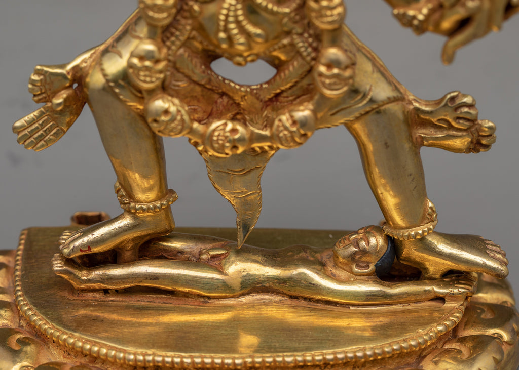 The statue, adorned with careful details, stands gently at a magnificent height that creates a powerful presence in your sacred place. Expert artisans have used copper's tenacity to create a robust body that acts as a canvas for exquisite decorations and a reflection of the statue's heavenly essence. The 24-karat gold gilded accents and acrylic paintings breathe life into the figure, emanating a golden hue that radiates tranquility and grace