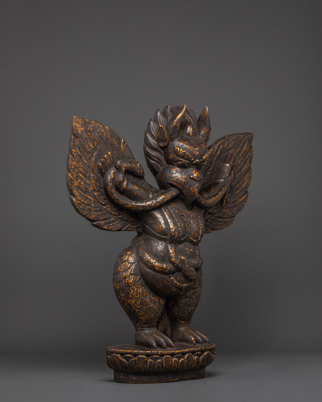 Garuda is a gigantic bird of prey in Buddhism. They are also known as Suparna at times. This translates to "good wings, good wings." They, like the Nagas, mix the attributes of animals and sacred beings and are the lowest of the Devas. Garuda has rulers and towns, and some have the magical ability to turn into human shapes while dealing with humans.