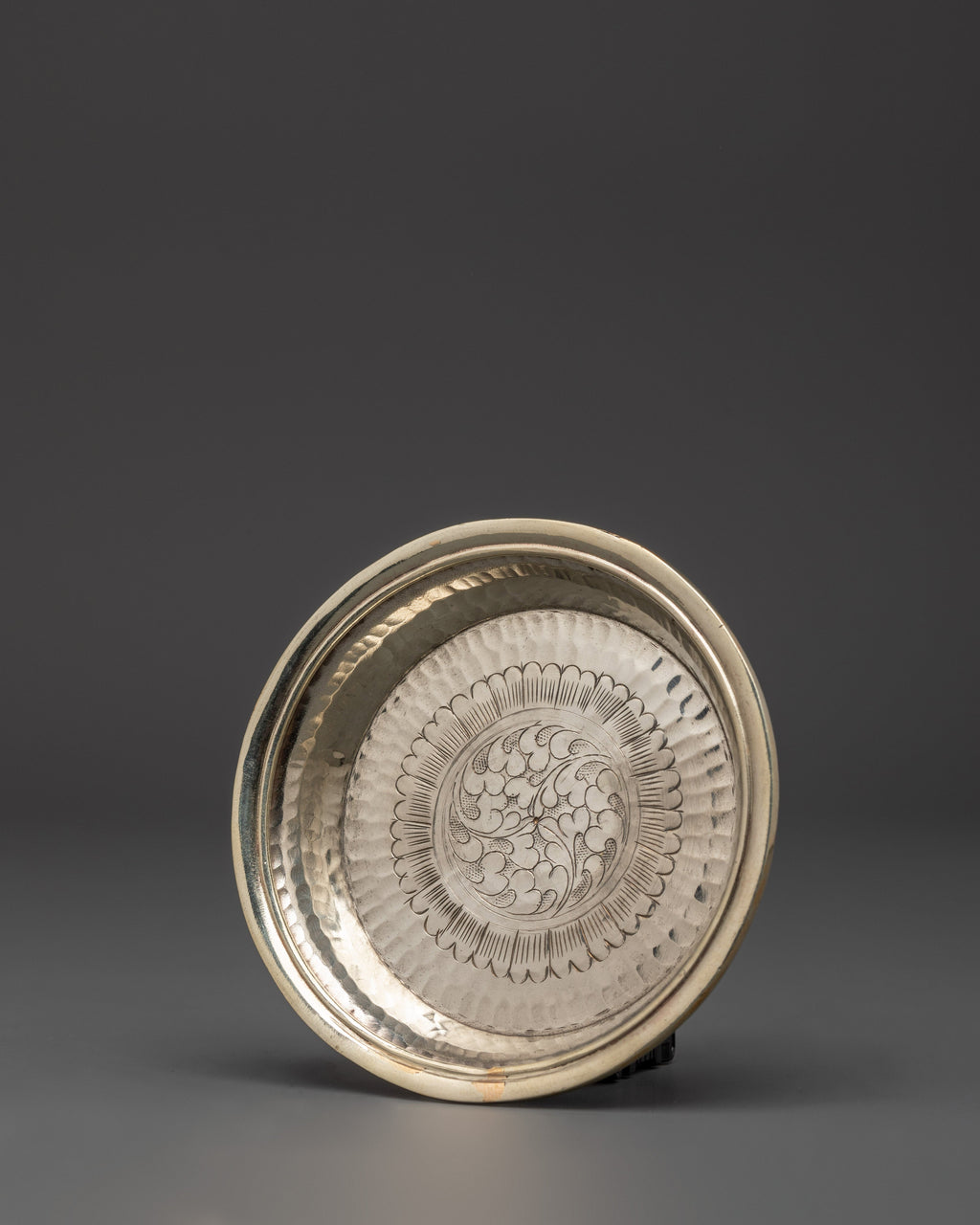This Thepche set of beautifully handcrafted metal bowls, which are typically used in spiritual and cultural rituals, is often referred to as "Thepche" in certain traditions. The elegant, polished finish and intricate designs inside the bowls highlight the craftsmanship and cultural significance of these items. These bowls may be used in meditation practices, offerings, or as decorative pieces, providing both spiritual meaning and aesthetic beauty to any space.