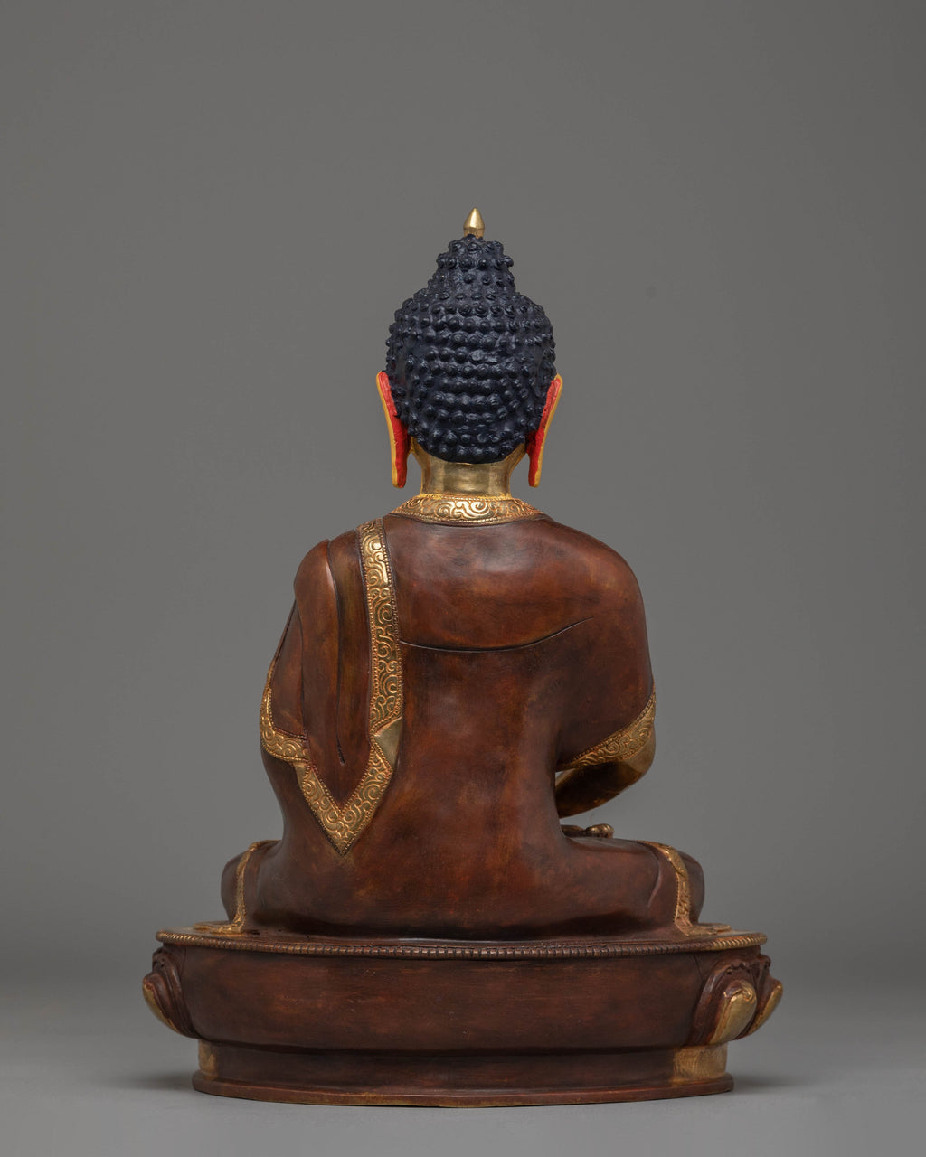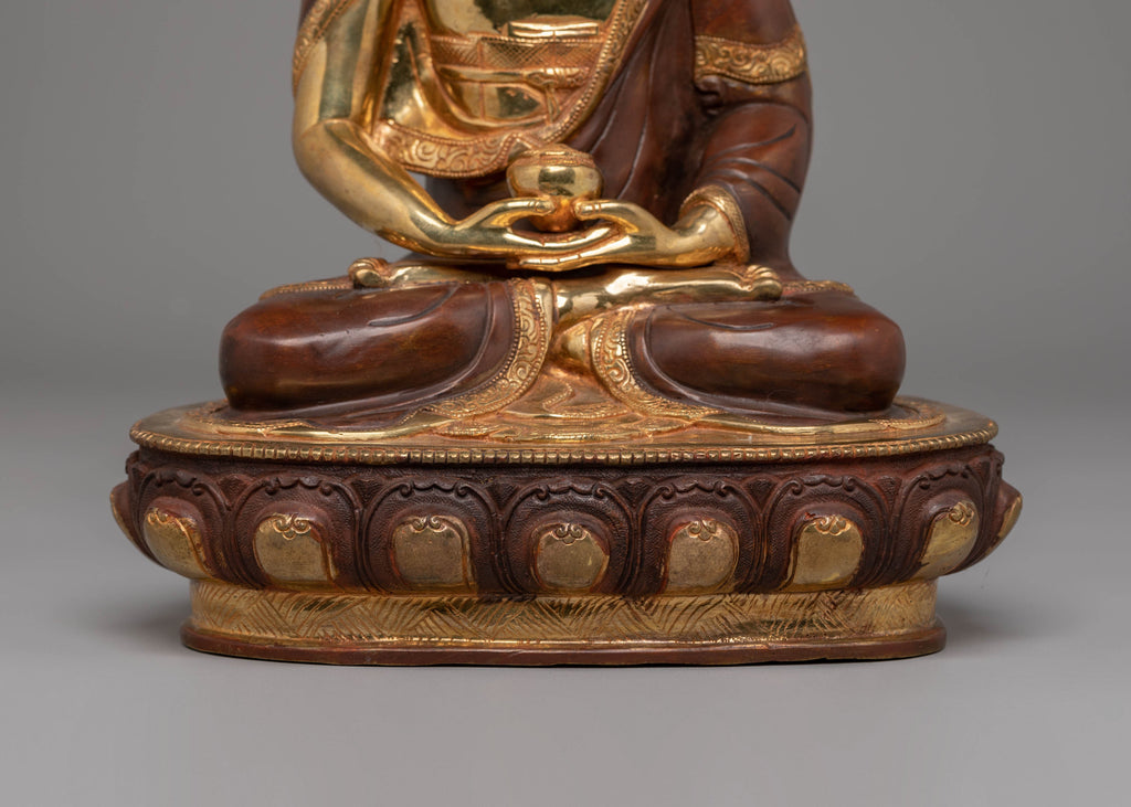 This 4.11 kg statue features a copper body gilded with gold-plated and embellished with bright acrylic color. These detailed features bring the statue to life, allowing it to exude peace and spiritual enlightenment, making it an excellent addition to any home, business, or sacred area.
