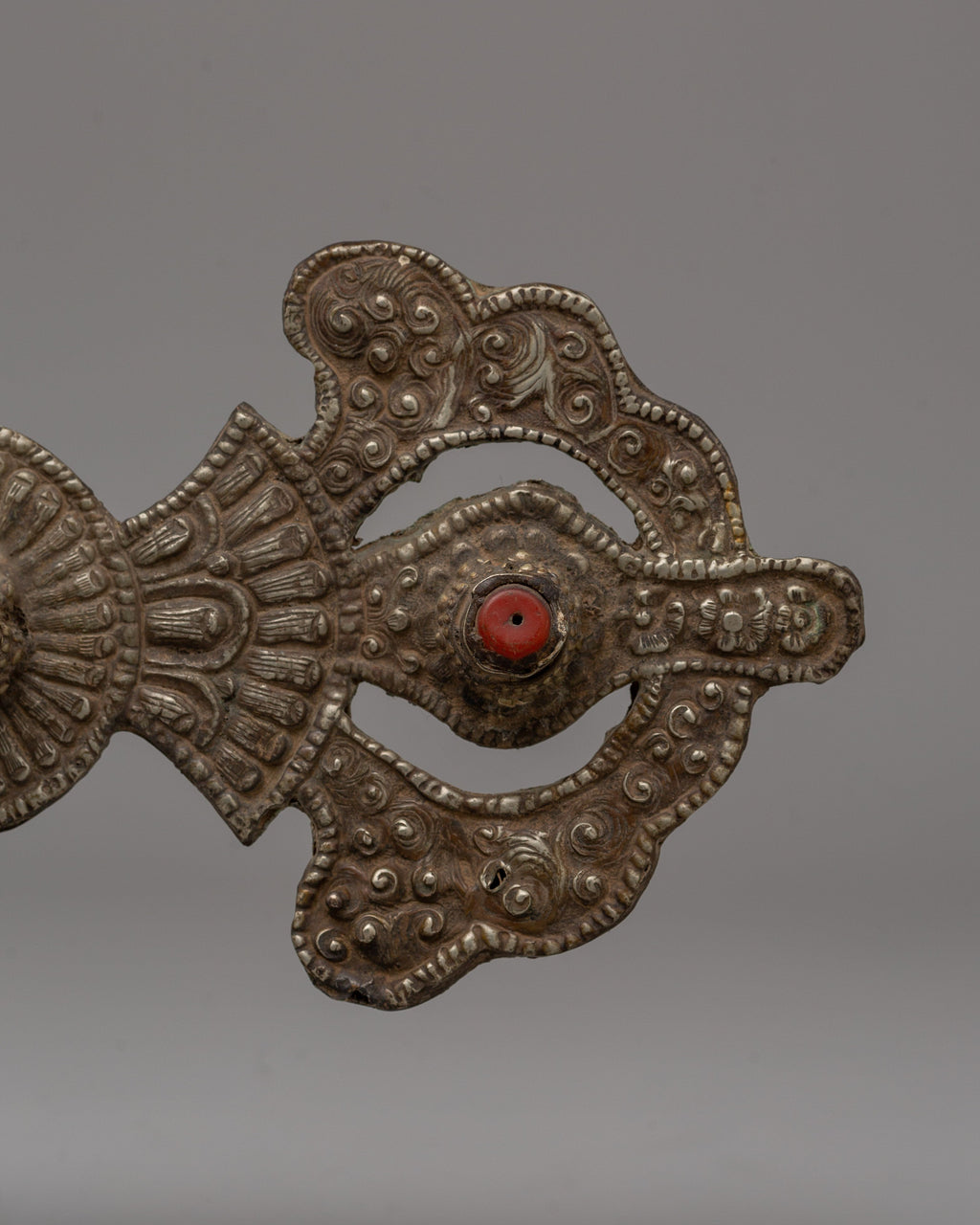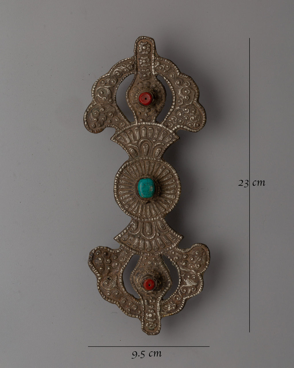 Measuring 23cm in height and 9.5cm in width, this Apron Buckleis a stunning combination of durability and delicate craftsmanship. This clasp blends practicality with timeless elegance, perfect for ceremonial aprons or as a decorative keepsake. Whether you are a practitioner of Tibetan traditions or admire unique handcrafted accessories, this piece will undoubtedly enhance your collection with its cultural depth and artistry.