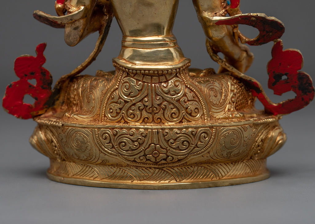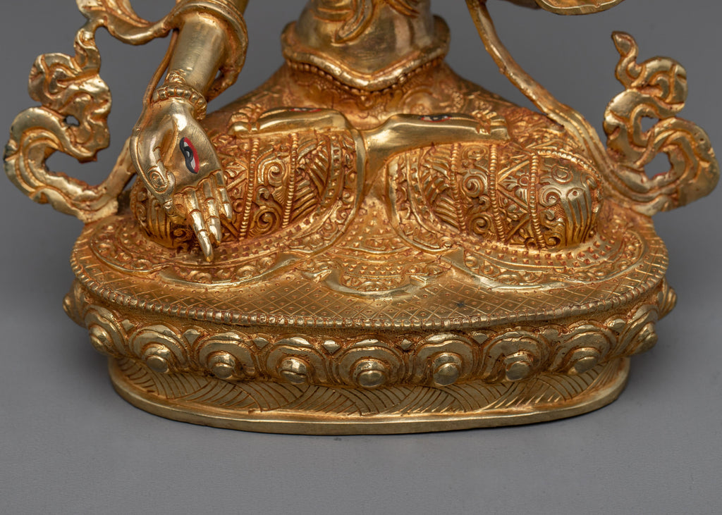 White Tara is depicted with seven eyes, which represent her caring alertness, and make her apart. Aside from the two usual eyes, she has a third eye on her forehead, one on each hand, and one on the soles of her feet. Her graceful appearance and elegant design make this statue a powerful symbol of healing, compassion, and protection, inviting longevity and good health to those who revere her.