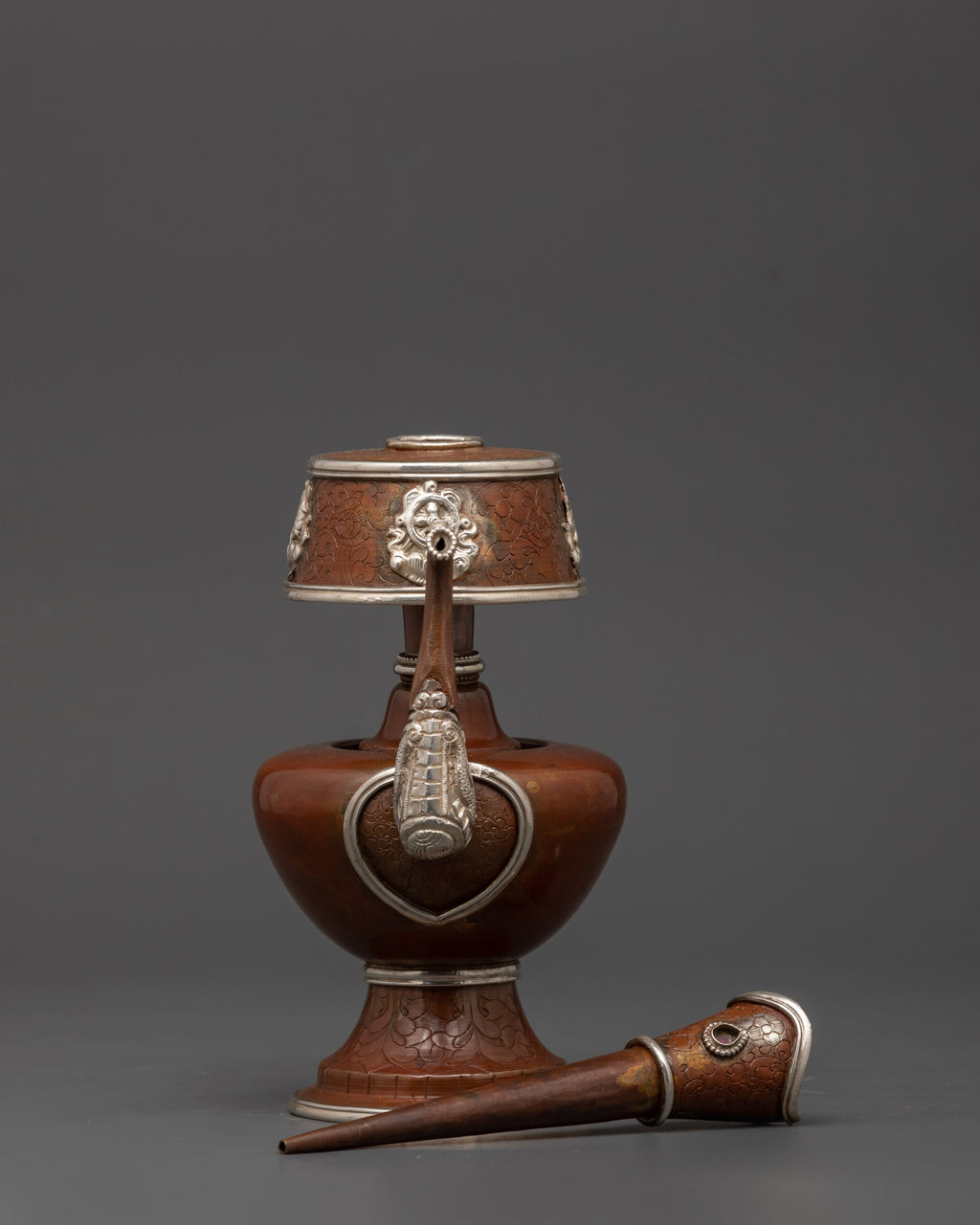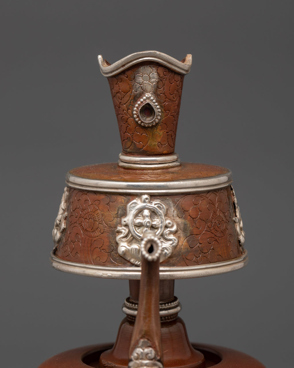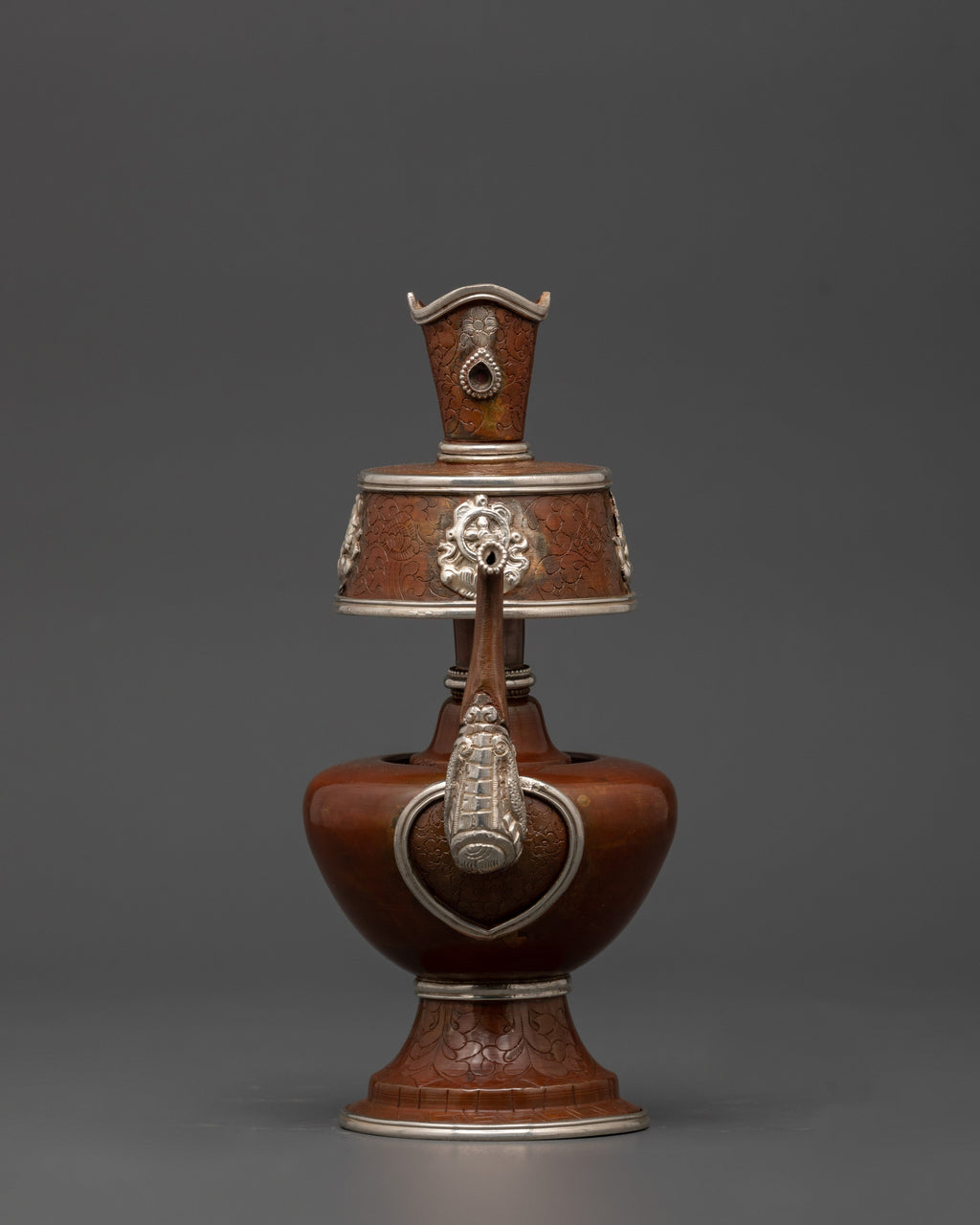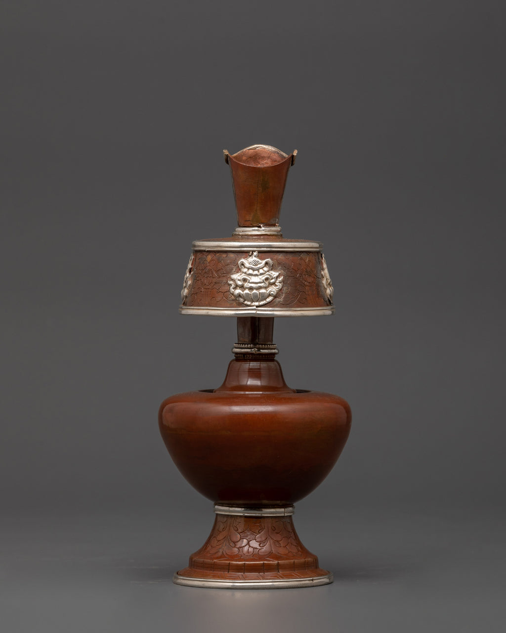 Tibetan Bhumba Water Offering Vase - Oxidized Copper with Brass & Silver Plating