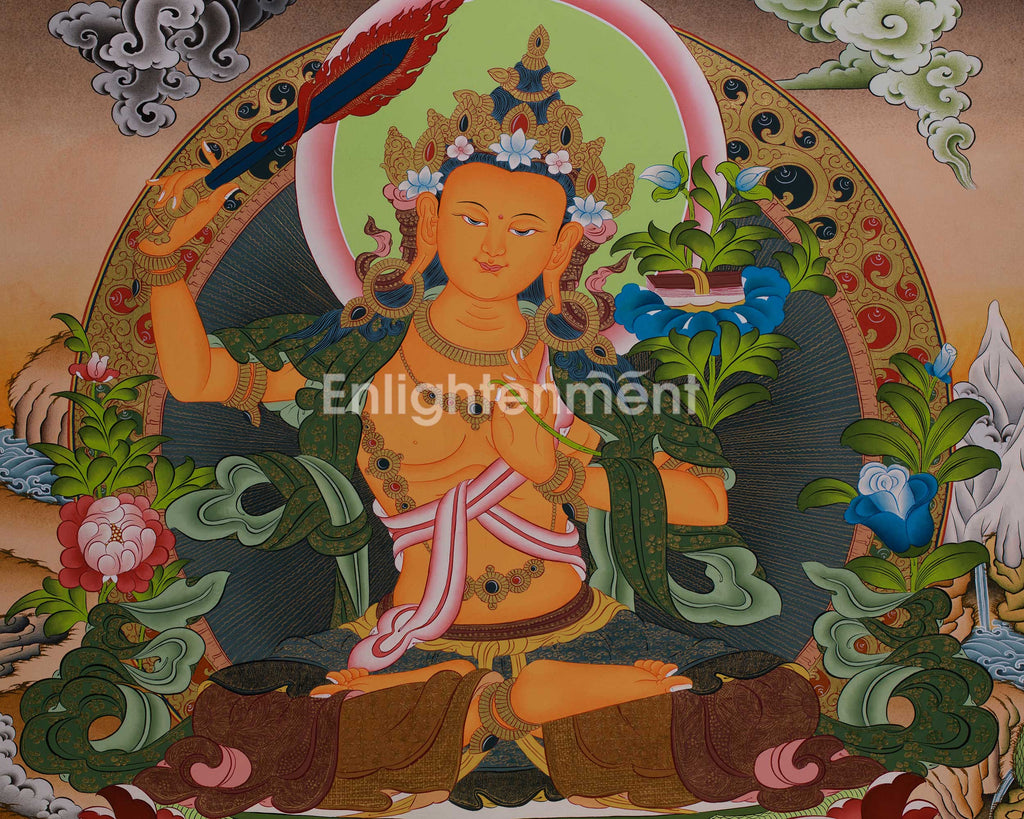Handmade Tibetan Bodhisattva Manjushri Painting | Divine Wisdom in Art