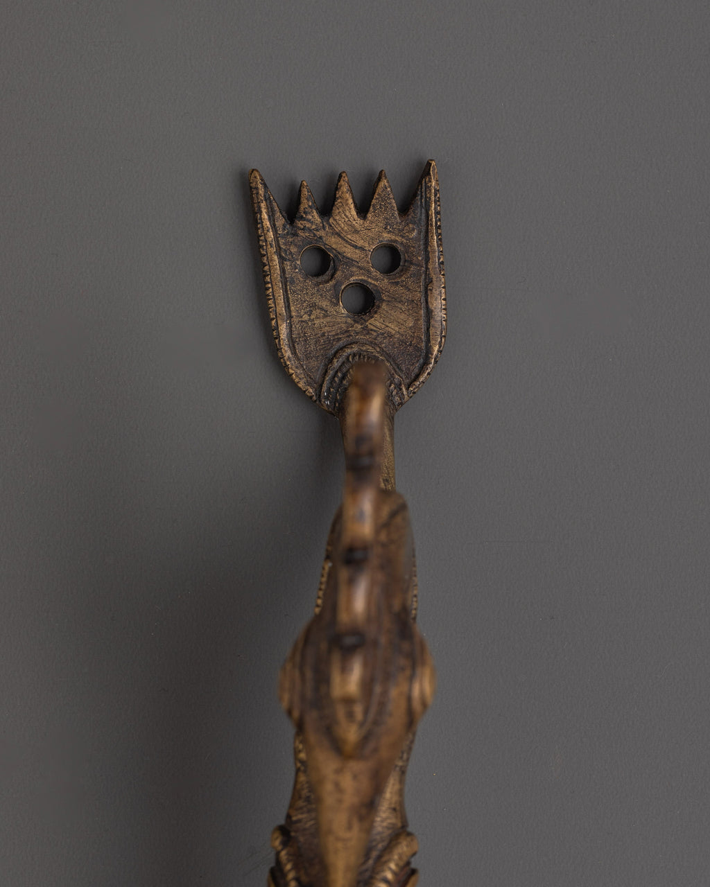 The Tibetan Brass Door Handle Set exemplifies the elegance and spiritual artistry of traditional Himalayan metalwork. Each handle, measuring 11cm in height and 31cm in breadth, is precisely carved from brass and features elaborate Tibetan designs inspired by temple architecture. The handles have a beautiful appeal that makes them ideal for giving a spiritual and cultural touch to doors, cabinets, or altar areas. Their antique brass finish adds to the overall look of your home, instilling a sense of spirituality and warmth.