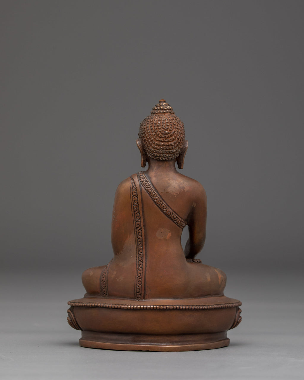 Tibetan Buddha Shakyamuni Figurine is finely handcrafted from an oxidized copper body, embodying the serene and grounded presence of the historical Buddha. Measuring 5.5”/14cm in height and 3.9”/10cm at the base, it weighs 0.61 kg. Symbolizing enlightenment, wisdom, and inner peace, this compact yet powerful piece is ideal for personal altars, meditation spaces, or as a meaningful spiritual gift.
