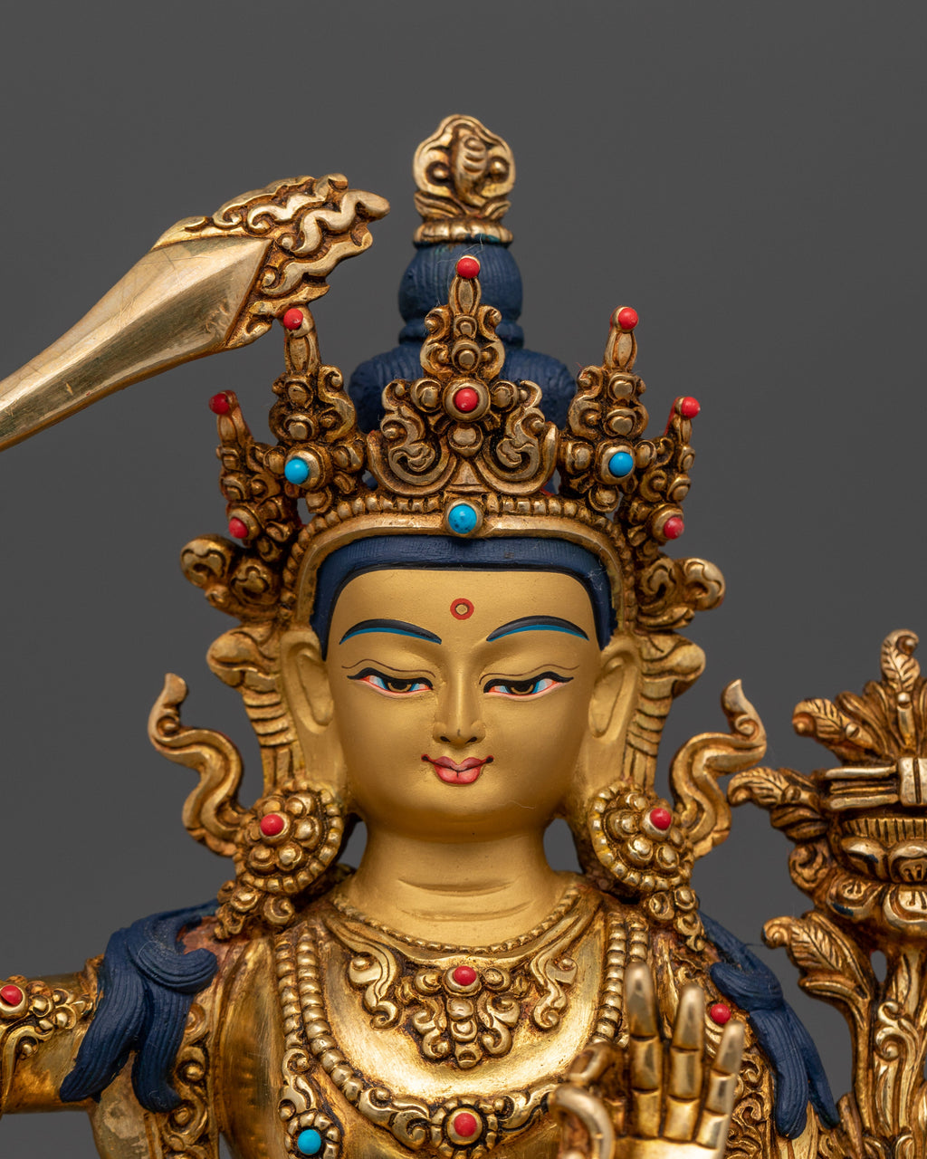Handmade Tibetan Buddhism Manjushri | 24K Gold Gilded Statue of Wisdom and Knowledge