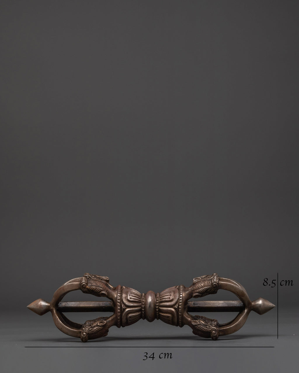 The Vajra’s intricate dual-ended design beautifully symbolizes the unity of wisdom and compassion, making it an essential tool for meditation, energy channeling, and spiritual rituals. Forged from iron, its robust body embodies raw elemental strength, ideal for dispelling negativity, enhancing mental clarity, and deepening spiritual focus. This Tibetan Dorje is not only a striking altar piece but also a powerful conduit for spiritual energy, commanding respect wherever it is placed—whether on a home shrine, temple altar, or during ceremonial practices. Embrace its potent energy to amplify your spiritual intent and cultivate inner balance. An essential item for collectors, yogis, monks, and spiritual seekers, this Tibetan Buddhist ritual Vajra enhances your altar with a grounding force and sacred symbolism.