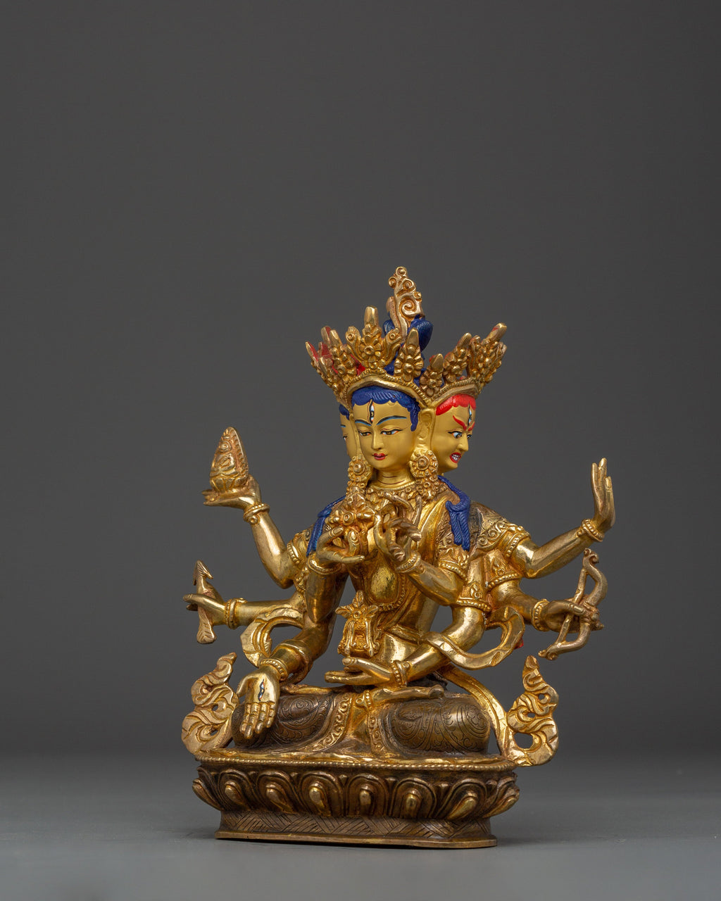 Explore the majestic elegance of the Buddhist Deity Namgyalma Copper Statue with this carefully made copper statue that is embellished with intricate acrylic painting and 24K gold plating. This statue, which is 9.6 inches tall, is a potent spiritual emblem for your altar or meditation area that invites change, compassion, and protection into your practice.