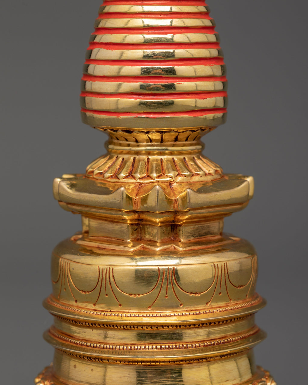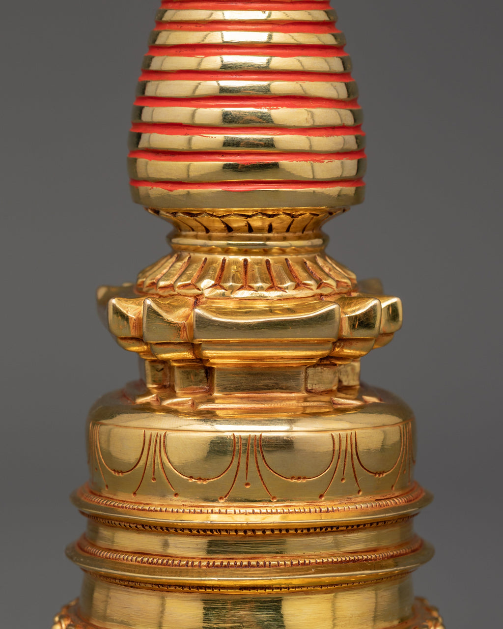 Tibetan Buddhist Gold-Plated Stupa | Spiritual Stupa for Altar or Shrine