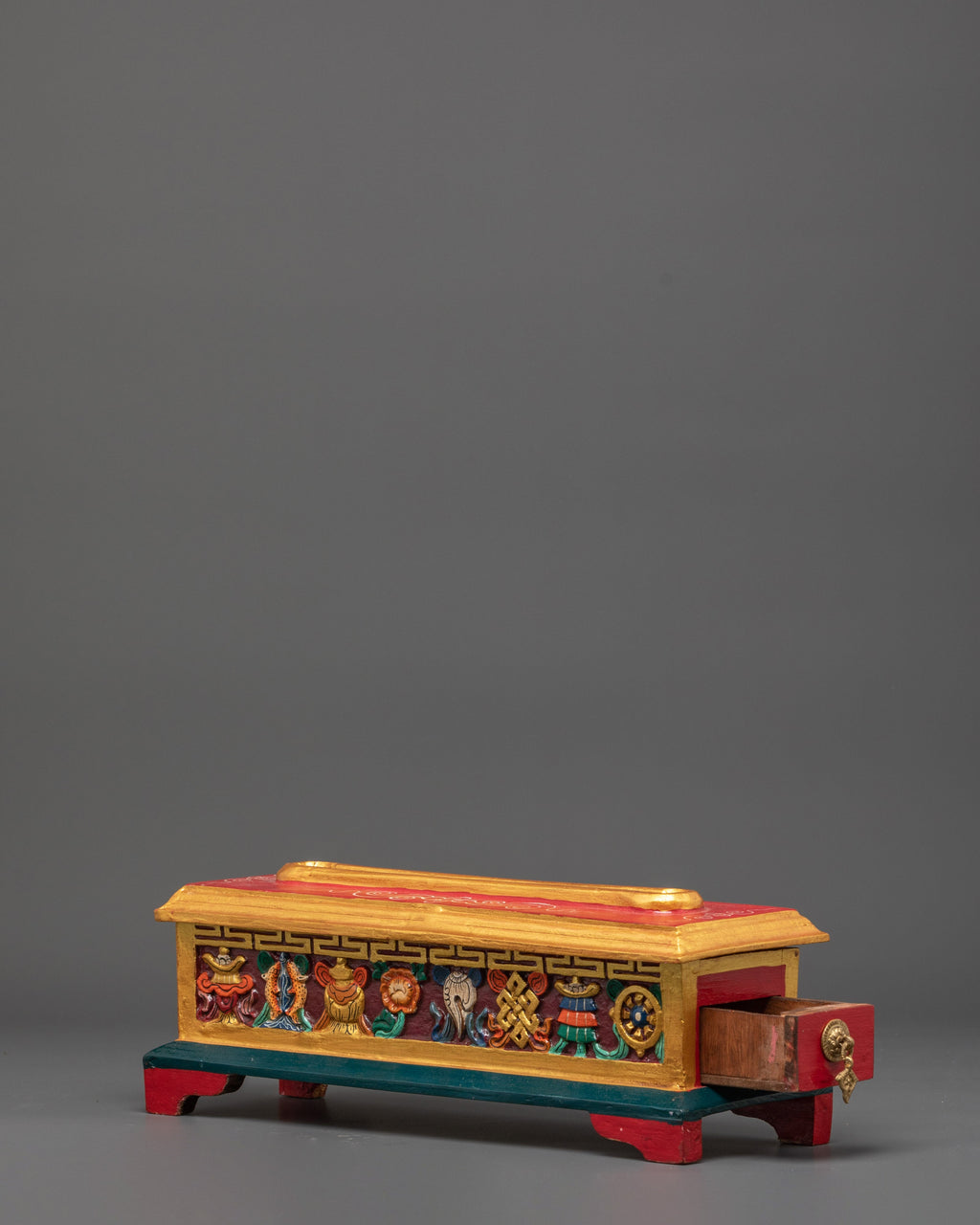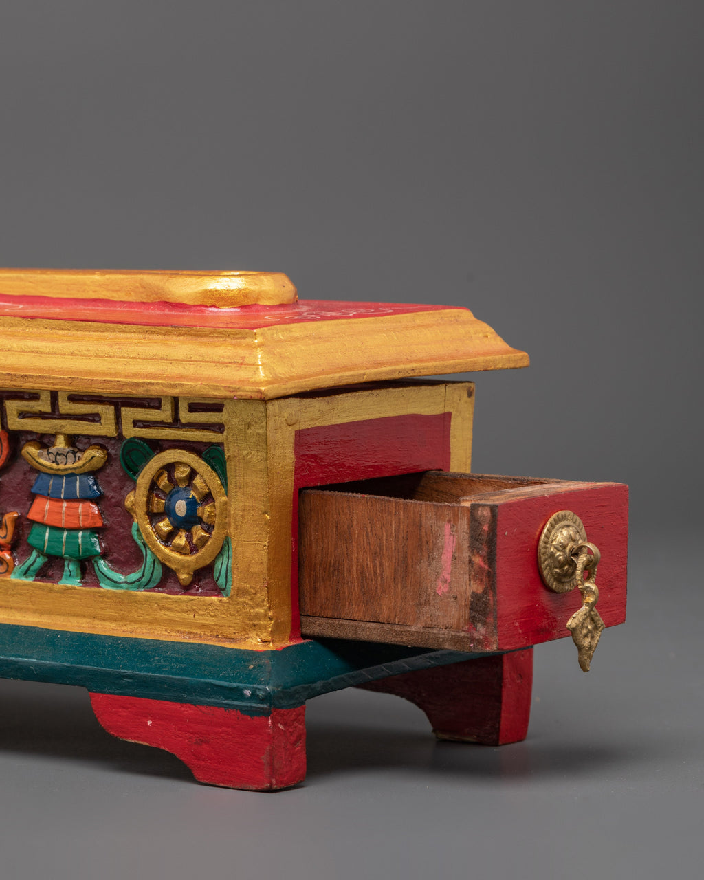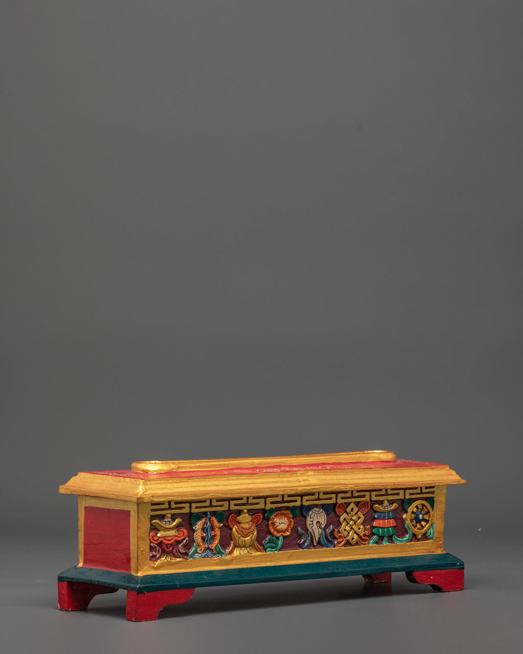 Handcrafted Tibetan Buddhist Incense Burner | Sacred Wooden Burner with Acrylic Detailing for Altars