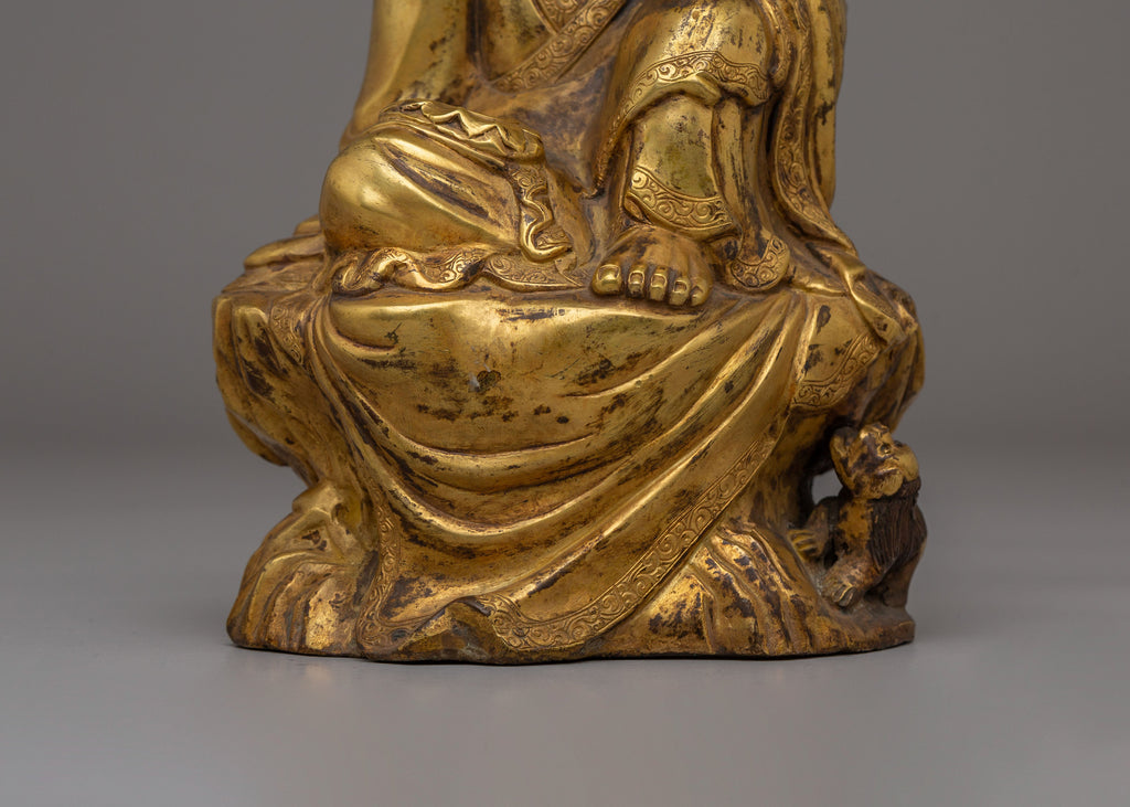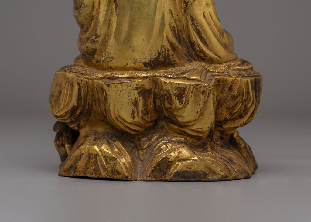 The statue depicts Kshitigarbha seated in deep meditation, cut through ignorance and suffering. Its intricate design and fine detailing reflect traditional Tibetan craftsmanship. Whether placed in your home or used for meditation, this statue serves as a powerful reminder of compassion, healing, and the path to enlightenment. Bring spiritual energy into your space with this magnificent Kshitigarbha statue.